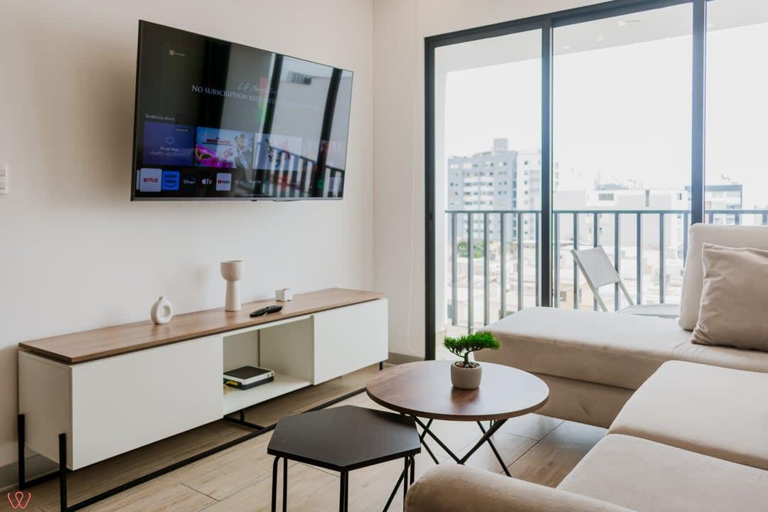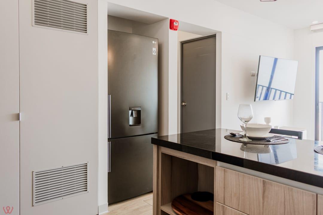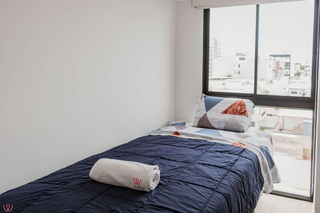 Modern apartment located at Avenida Javier Prado Oeste 770 508, Lima. It features two full bathrooms, one Queen bed, and one single bed. Equipped with high-speed Wi-Fi and a fully functional kitchen. Situated in a lively area close to shopping centers, parks, and restaurants. Perfect for a comfortable stay for up to 3 guests.