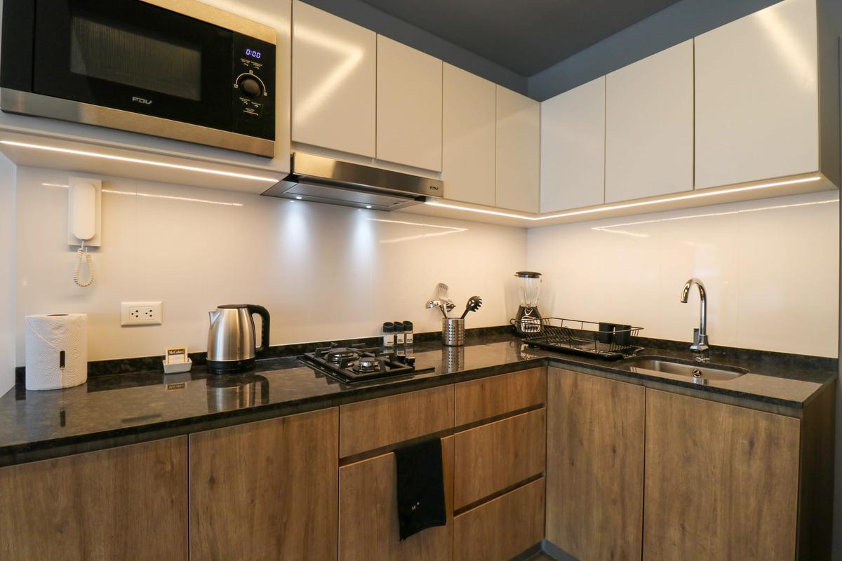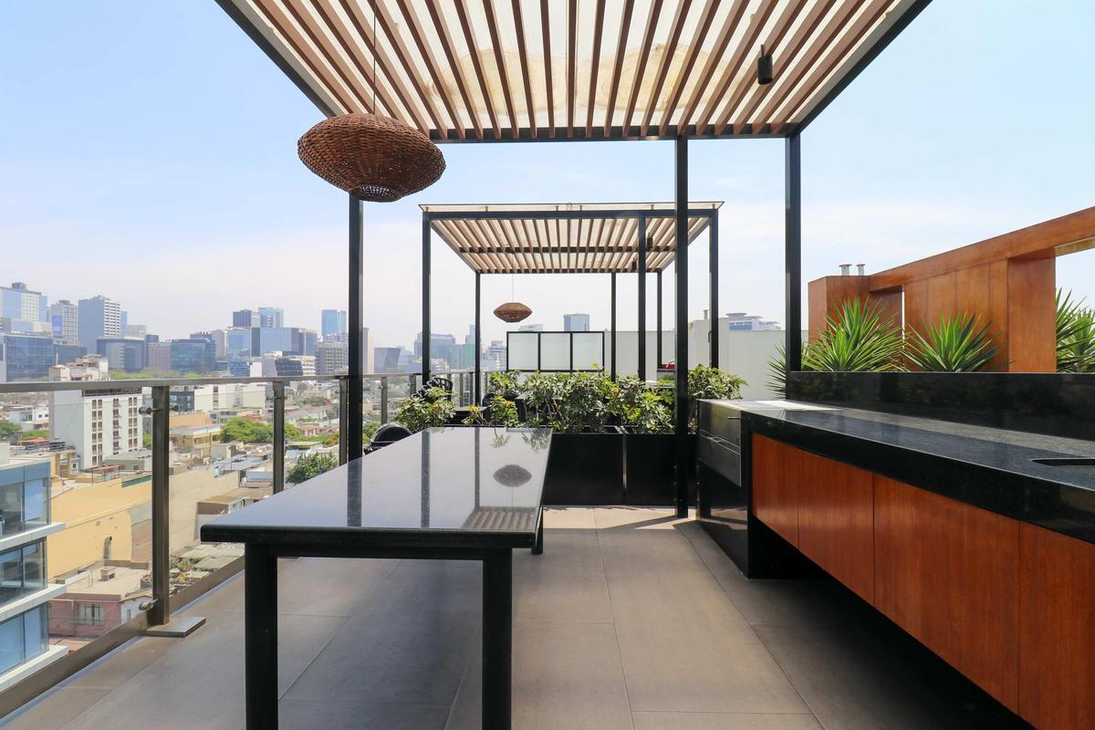 In the welcoming Miraflores neighborhood, this beautiful apartment it's very well located; just minutes away from Larcomar shopping center, Parque Kennedy, Virgen de Fatima Parish, and exclusive gyms. The area has currency exchange services, and labs centers in case you need to take a test, such as ROE and Multilab.