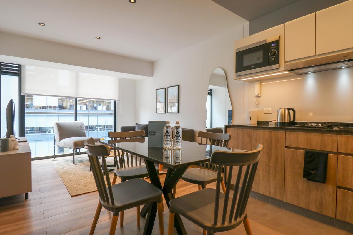 Discover a beautifully equipped 1-bedroom apartment in the heart of San Isidro, Lima. This cozy and spacious retreat is ideal for family vacations, trips with friends, or romantic getaways. Whether you're here for a weekend or an extended stay, this apartment offers the perfect combination of comfort and convenience in one of Lima's most prestigious neighborhoods. The building is conveniently located near a main avenue.