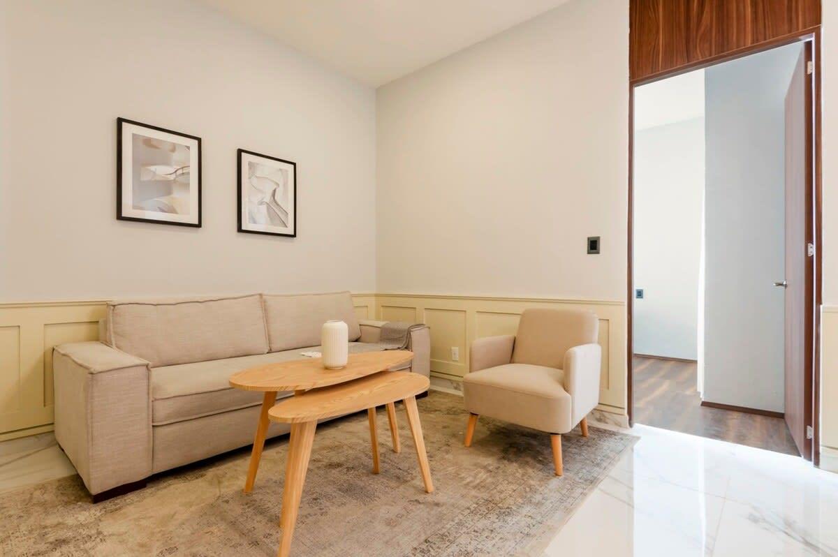 This fully remodeled 1 bedroom apartment is located in the heart of Polanco, a few blocks away from Avenida Presidente Masaryk, the premier shopping street of Mexico City. You'll be surrounded by exclusive stores and upscale international restaurants. This area's leafy side streets host Spanish Colonial Revival mansions and luxury apartments.
