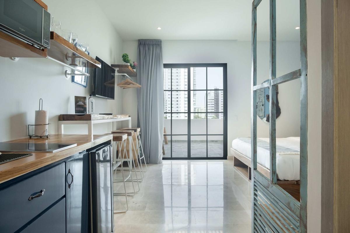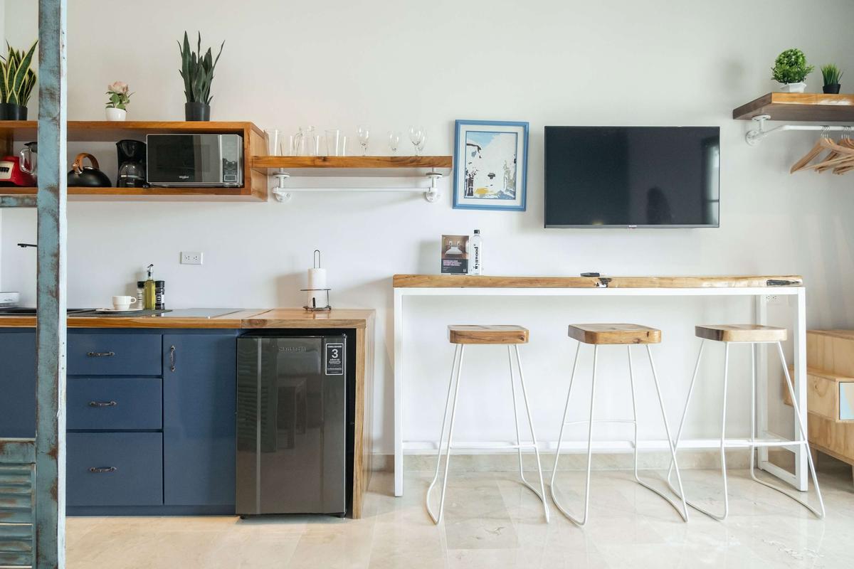 Brand-new 30 sqm exterior-facing design studio located in a luxury hotel-style tower on one of the best blocks in Bocagrande. Thoughtfully designed with premium finishes, modern kitchenette, air conditioning, and fast Wi-Fi. The studio offers exterior views and a bright, comfortable layout. The well-known Spinning Center Gym Cartagena is located within the same tower—ideal for short or extended stays.