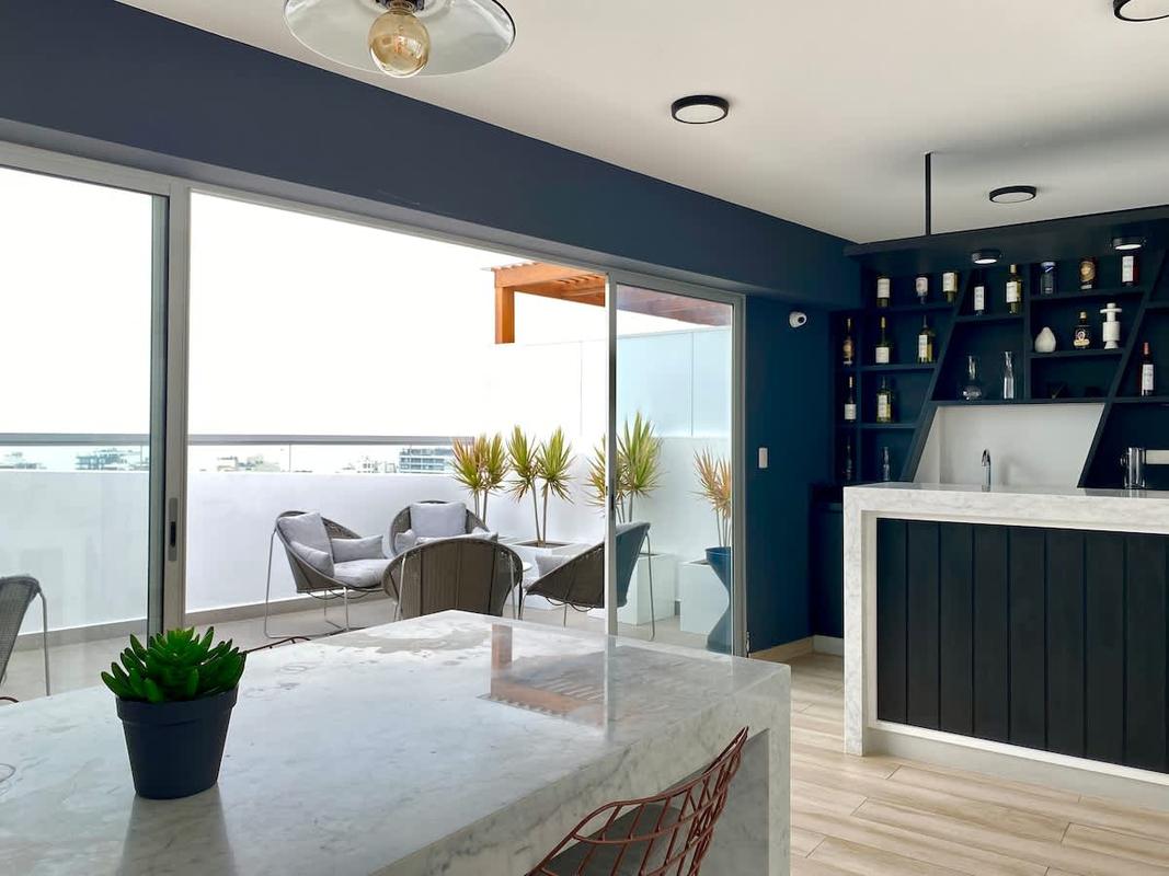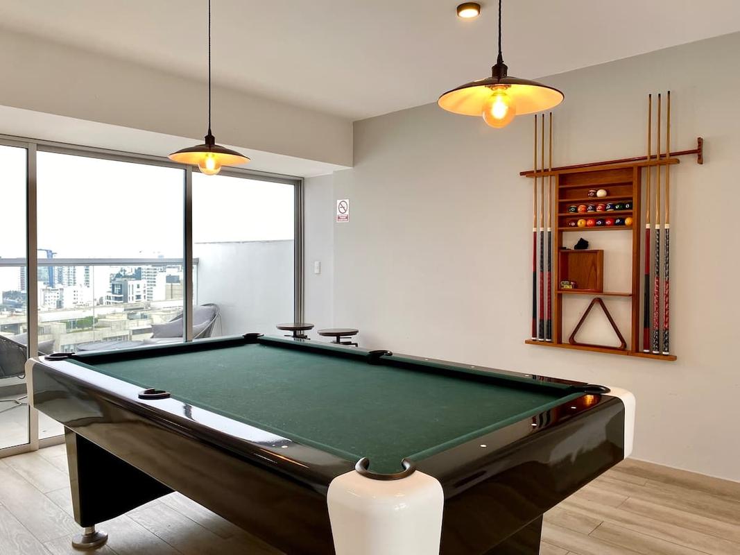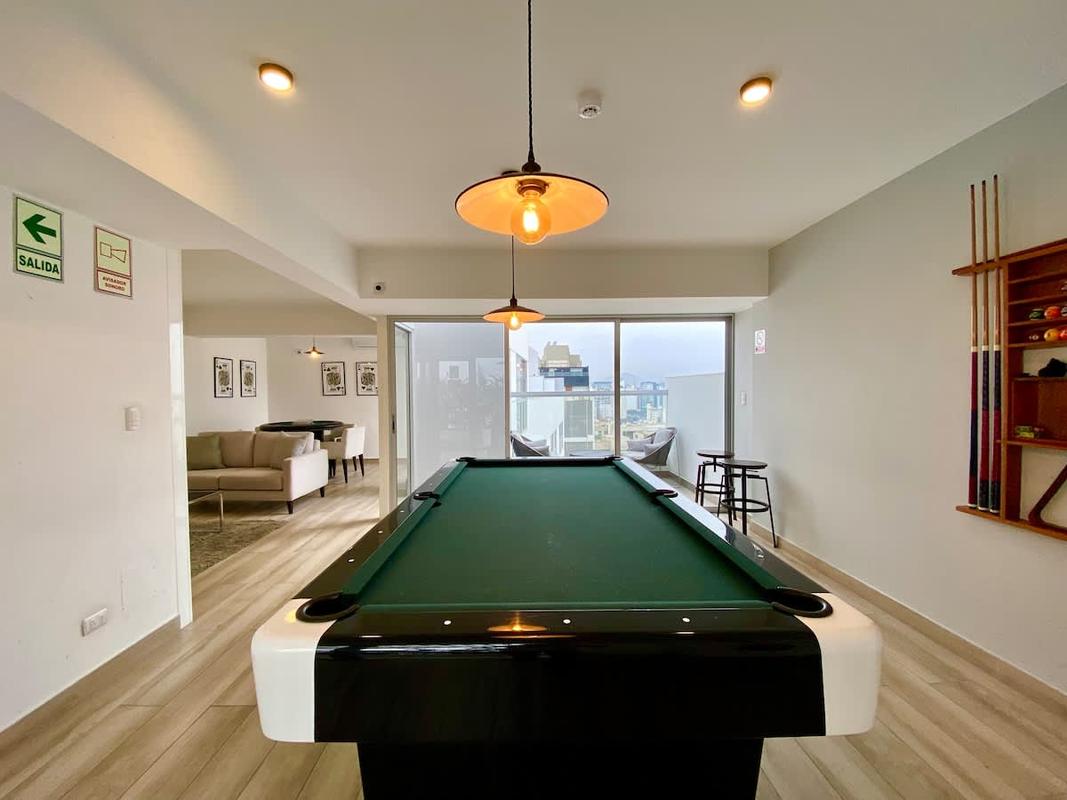 Disfruta de una experiencia inolvidable en este departamento ubicado en el piso 14 de un moderno edificio que cuenta con piscina, bicicletas, gimnasio, sala de juegos, sala bar, parrilla y lavandería, en el centro de Barranco.
