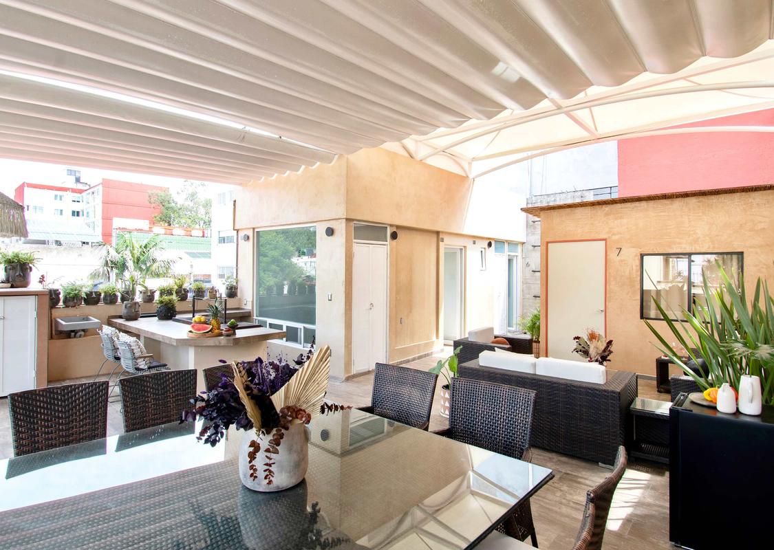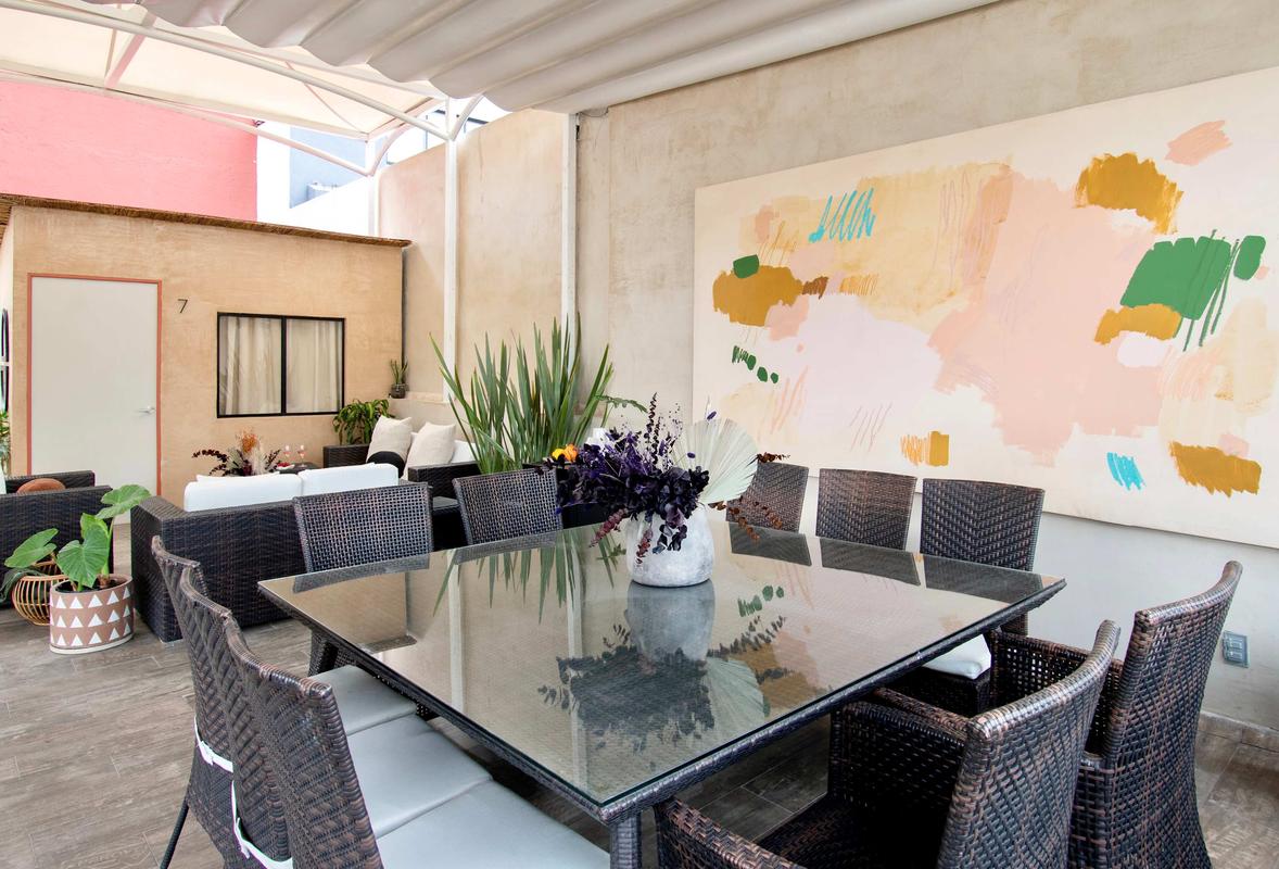 The kitchen, the heart of the home, is fully equipped with high-end appliances and unique details: Oaxacan ceramics, glassware from Valle de Bravo, and handcrafted tableware from San Miguel de Allende. Cooking here becomes a sensory and emotional experience.