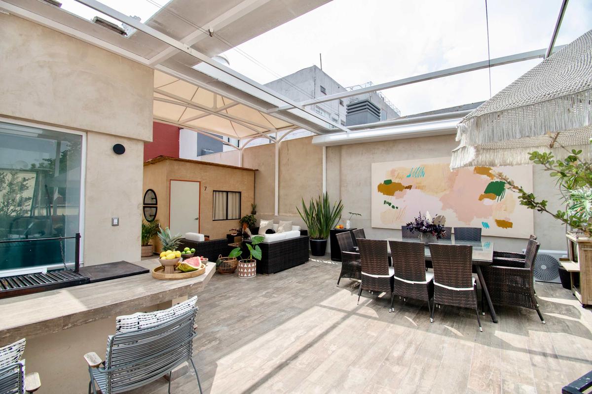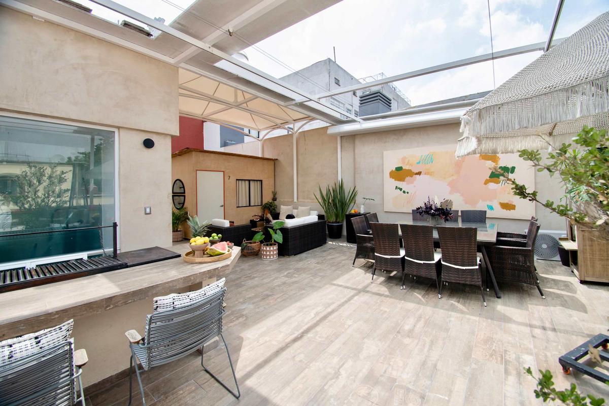 Upstairs, the rooftop awaits with a lounge area, dining table, and barbecue: the perfect place to enjoy the sunset or a dinner under the stars.