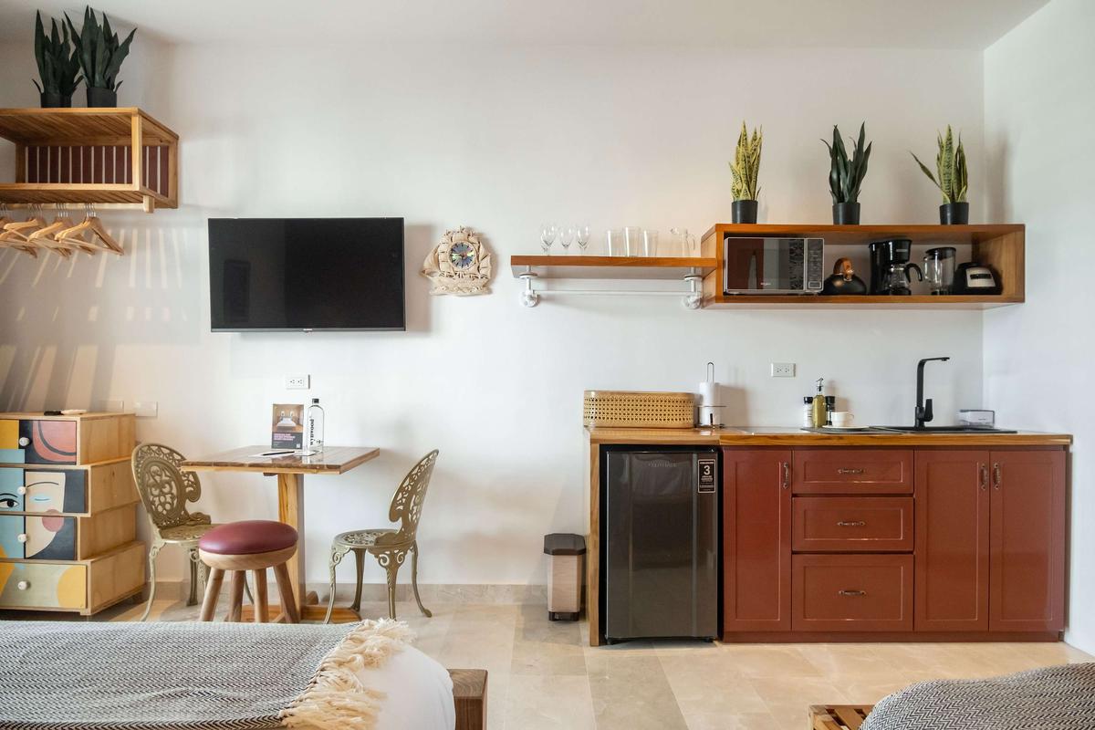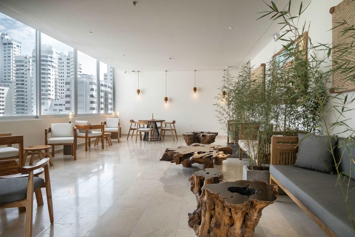 Brand-new 30 sqm exterior-facing design studio located in a luxury hotel-style tower on one of the best blocks in Bocagrande. Thoughtfully designed with premium finishes, modern kitchenette, air conditioning, and fast Wi-Fi. The studio offers exterior views and a bright, comfortable layout. The well-known Spinning Center Gym Cartagena is located within the same tower—ideal for short or extended stays.