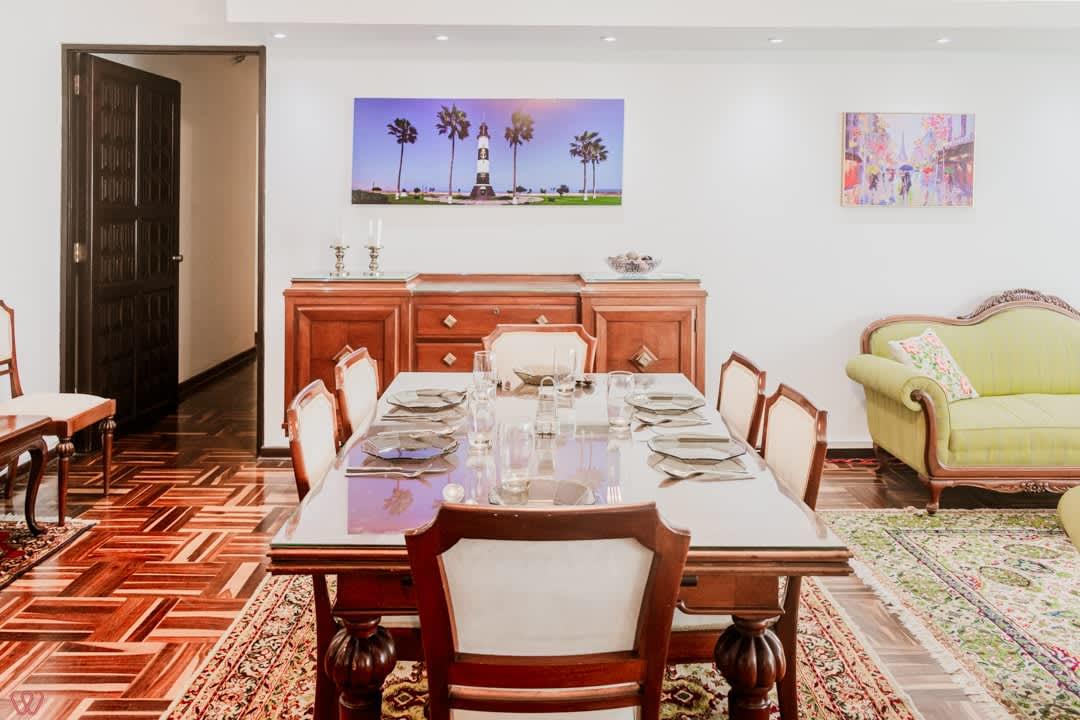 Experience upscale coastal living in this spacious Miraflores apartment with king and queen beds, three bathrooms, fast Wi-Fi, and a fully equipped kitchen. Just steps from the Malecón, lush parks, and top dining spots, it’s perfect for a comfortable and memorable stay.