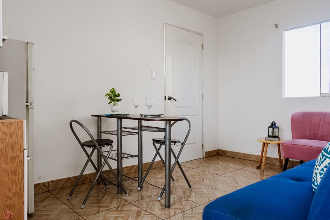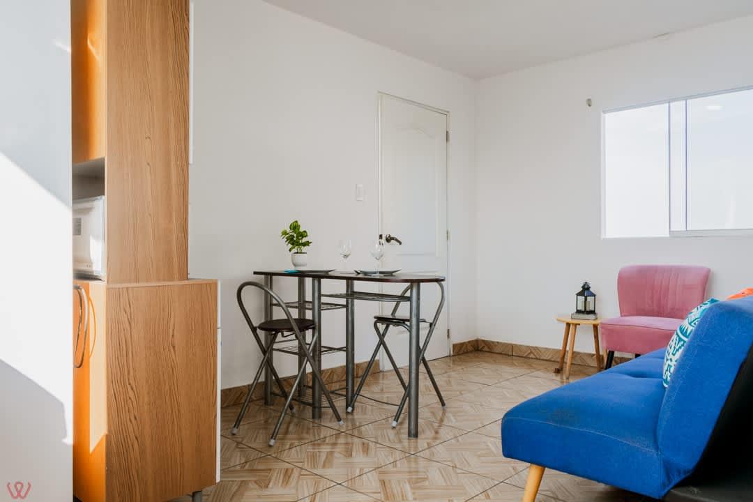 Acogedor apartamento en Chorrillos diseñado para albergar hasta dos personas, te ofrece el espacio perfecto para una estancia relajante. El lugar es seguro y tranquilo. El departamento cuenta con una habitación, baño completo, cocina equipada, ropa de cama y mucho más. ¡Sean bienvenidos! Haremos todo lo posible para que su estadía sea exitosa y placentera.