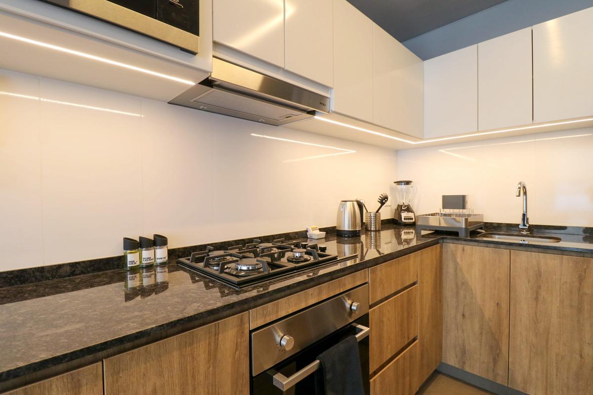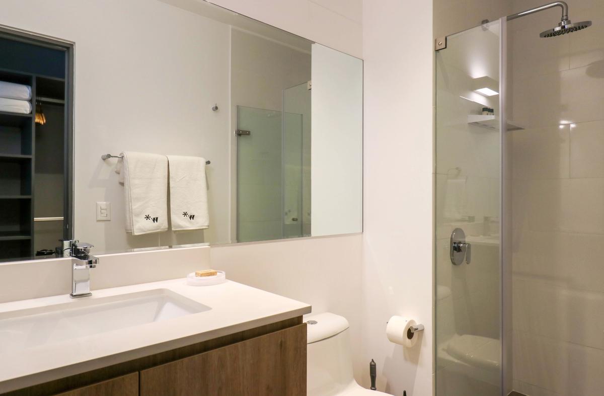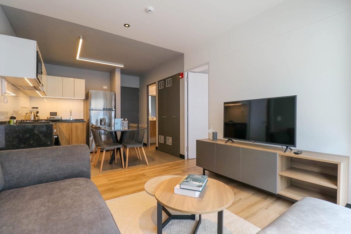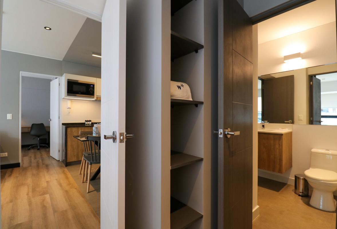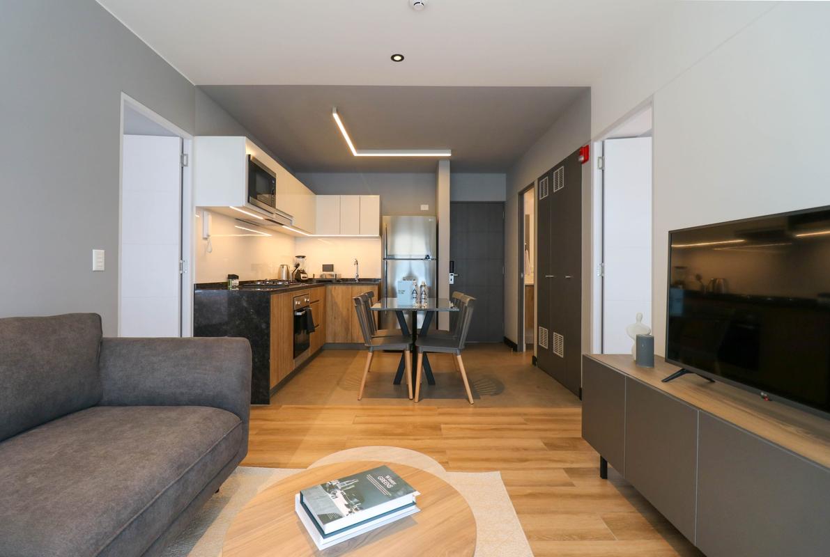 In the welcoming Miraflores neighborhood, this beautiful apartment it's very well located; just minutes away from Larcomar shopping center, Parque Kennedy, Virgen de Fatima Parish, and exclusive gyms. The area has currency exchange services, and labs centers in case you need to take a test, such as ROE and Multilab.