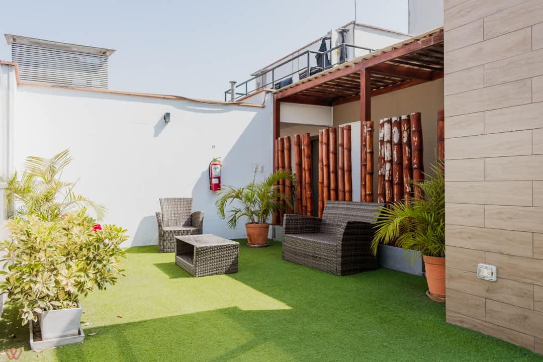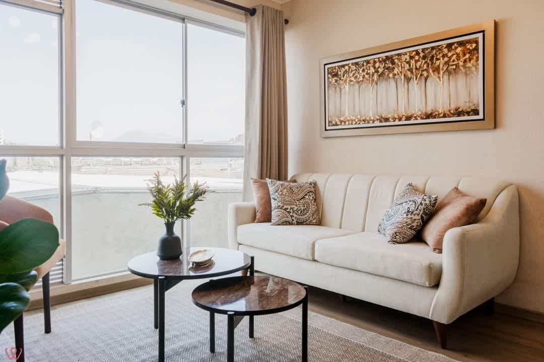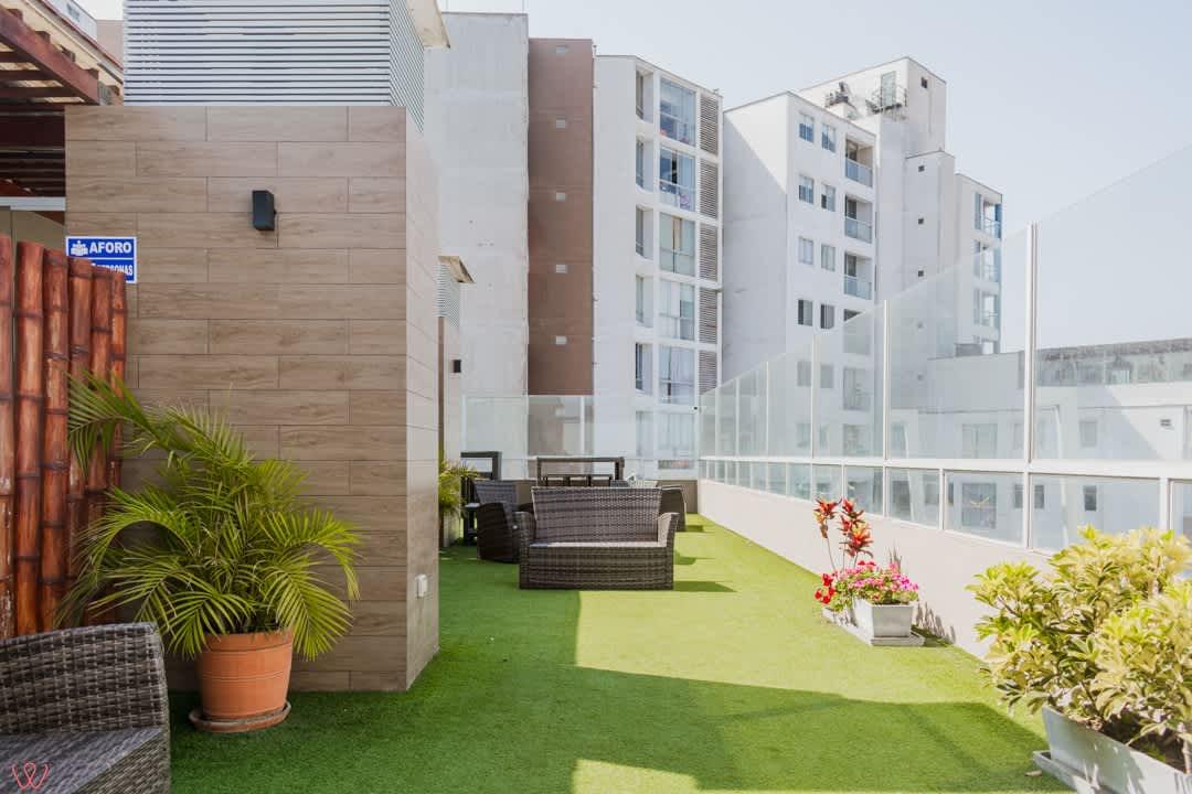 Departamento ubicado en Barranco, acondicionado para 4 huéspedes. El edificio es seguro y céntrico, ofrece una excelente vista y está rodeado de todo lo que te ofrece Barranco. El departamento tiene un diseño clásico, cuenta con dos habitaciones, dos baños completos, cocina equipada, ropa de cama, áreas para el uso del huésped (terraza, parrilla, gimnasio) y mucho más. ¡Sean bienvenidos! Haremos todo lo posible para que su estadía sea placentera