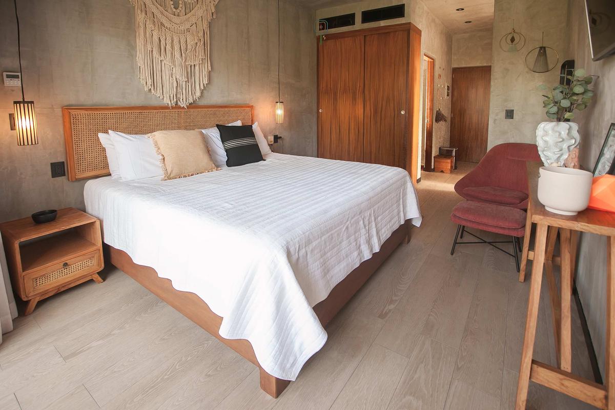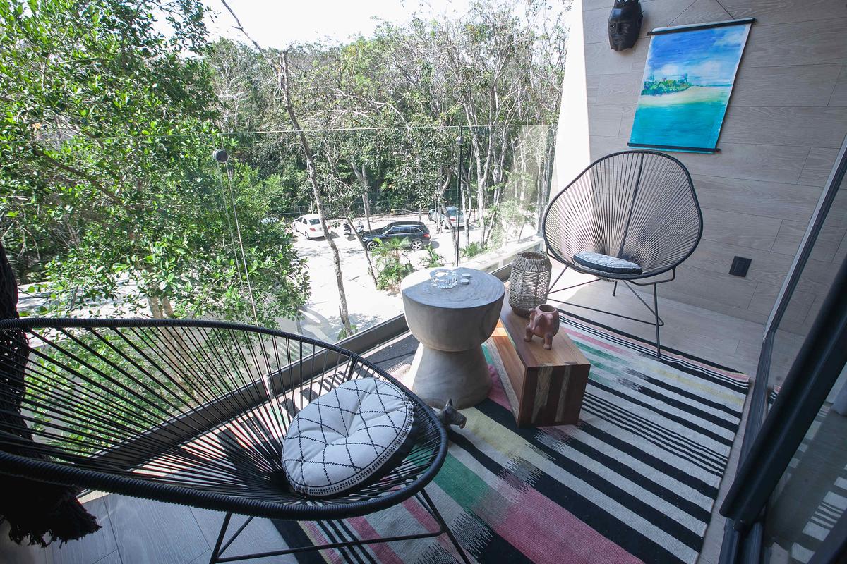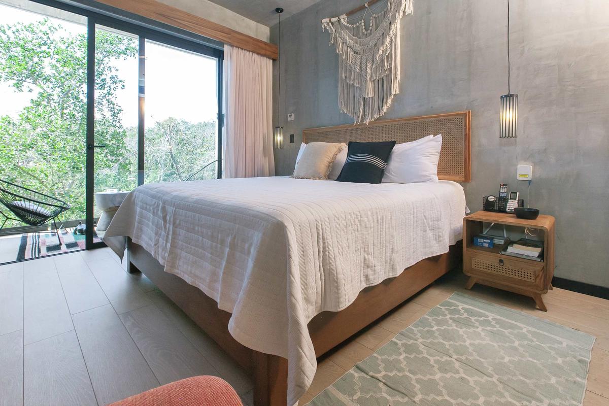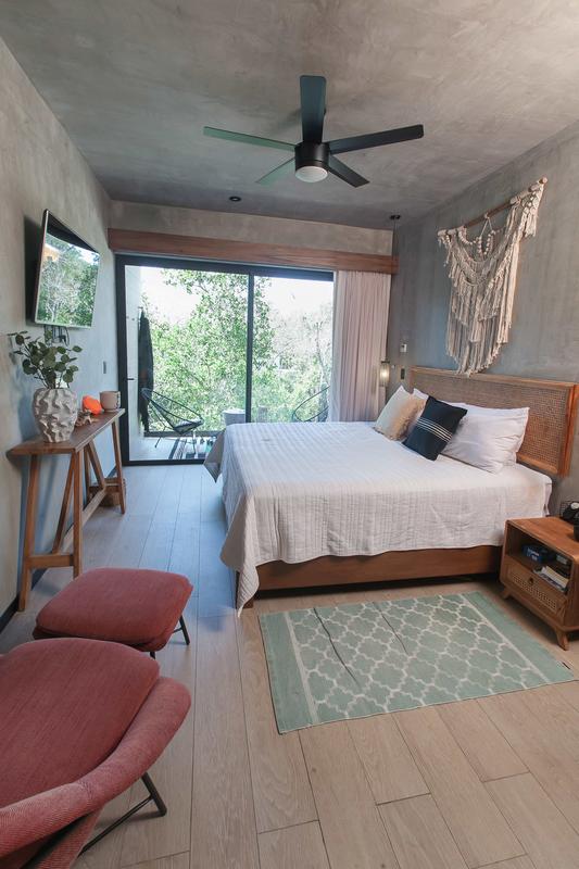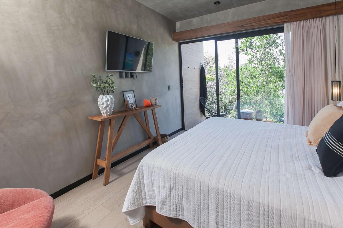 This modern and luxurious studio offers an unbeatable location in Tulum, right next to the road that leads to some of the area’s most beautiful beaches. It’s the perfect space for travelers seeking comfort, style, and a close connection with nature. Relax in the hammock on the balcony overlooking the jungle, or prepare a meal in the fully equipped kitchen, which has everything you need for a pleasant stay.