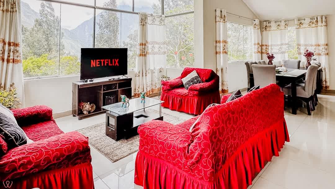 Spacious apartment in Ollantaytambo, Cusco, ideal for up to 11 guests. Features multiple beds including double and single beds, and 2.5 bathrooms. Fully equipped kitchen, ample living and dining space, and high-speed Wi-Fi. Located near the historic Ollantaytambo ruins, local markets, and traditional Peruvian restaurants in a peaceful and charming setting.