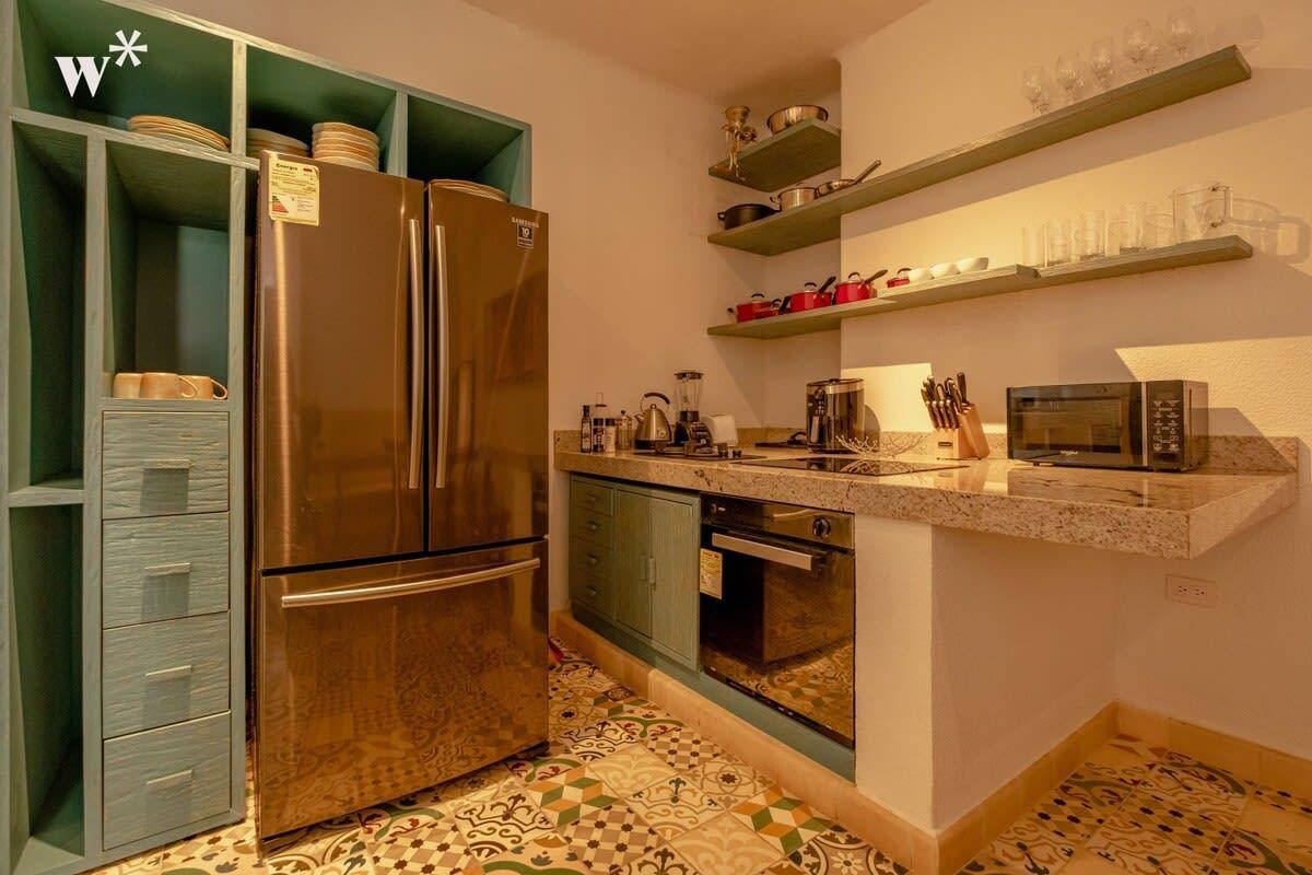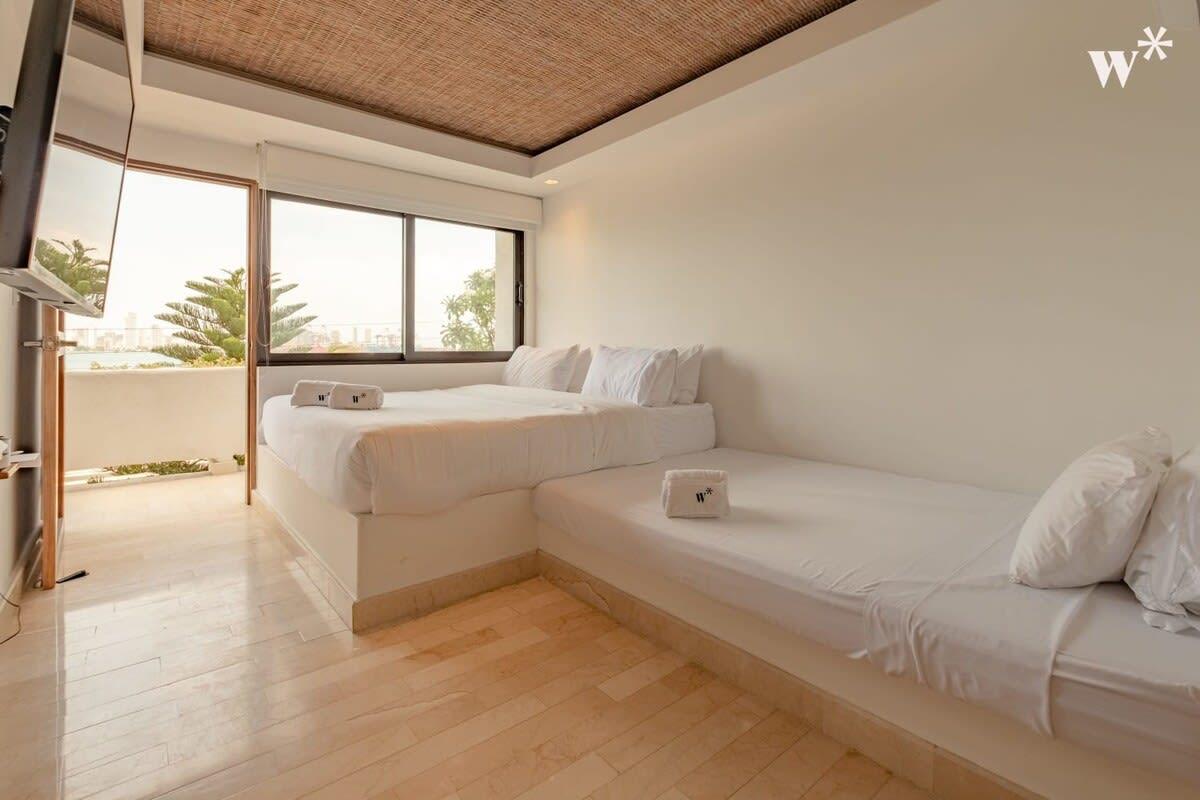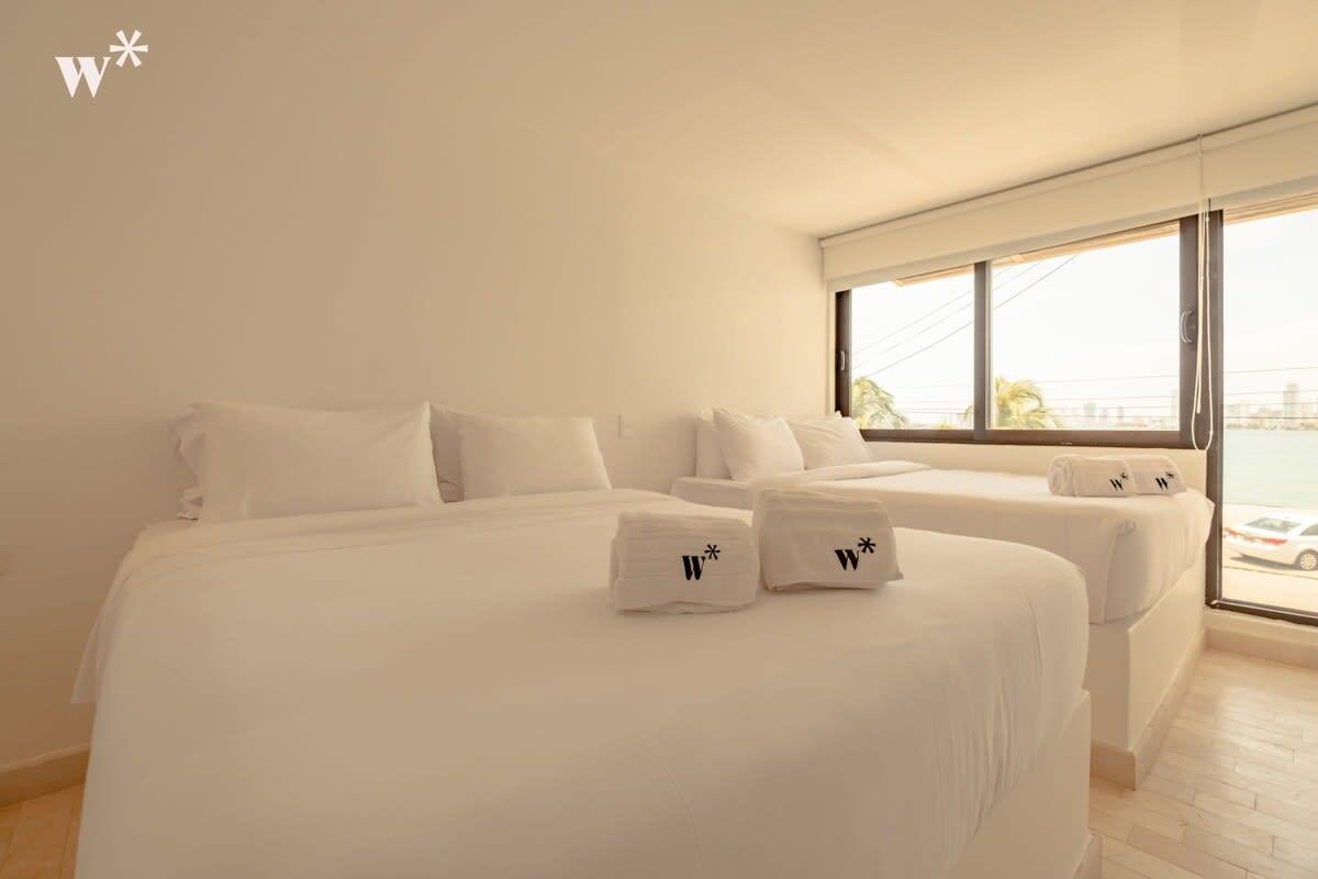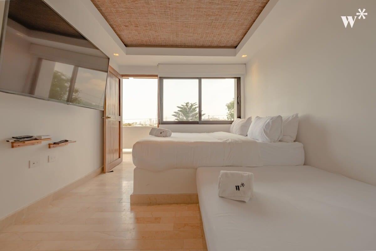 Located in centric Cartagena, in the residential area of Bocagrande, Castillo Grande, 5 minutes from Getsemani. TSpacious 4-bedroom house for 12 guests, featuring a large open terrace with stunning bay views, full air conditioning, hotel-quality bedding, a fully equipped kitchen, and a comfortable, elegant design ideal for families or groups.
