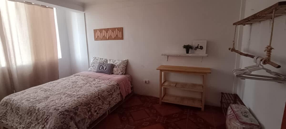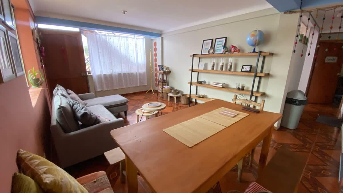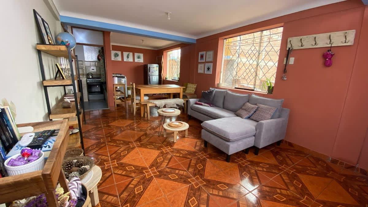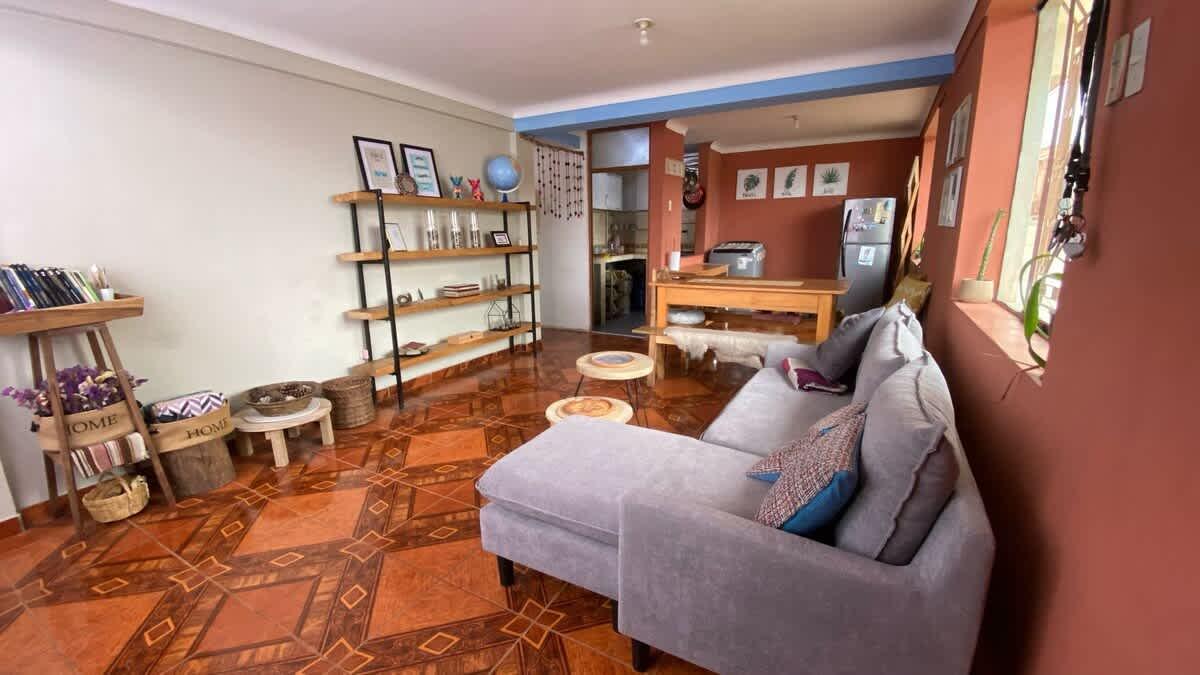 Comfortable apartment in Wimpillay, Cusco, ideal for up to 4 guests. Features two double beds and one full bathroom. Fully equipped kitchen, cozy living and dining area, and reliable Wi-Fi. Located near the Sacred Valley, local artisan markets, and cultural sites, in a peaceful and picturesque neighborhood.