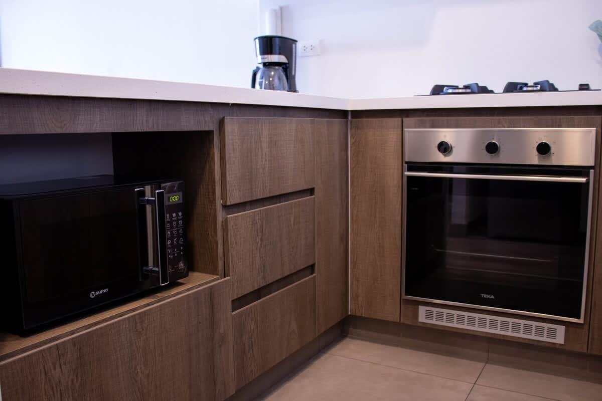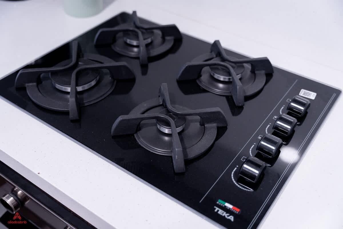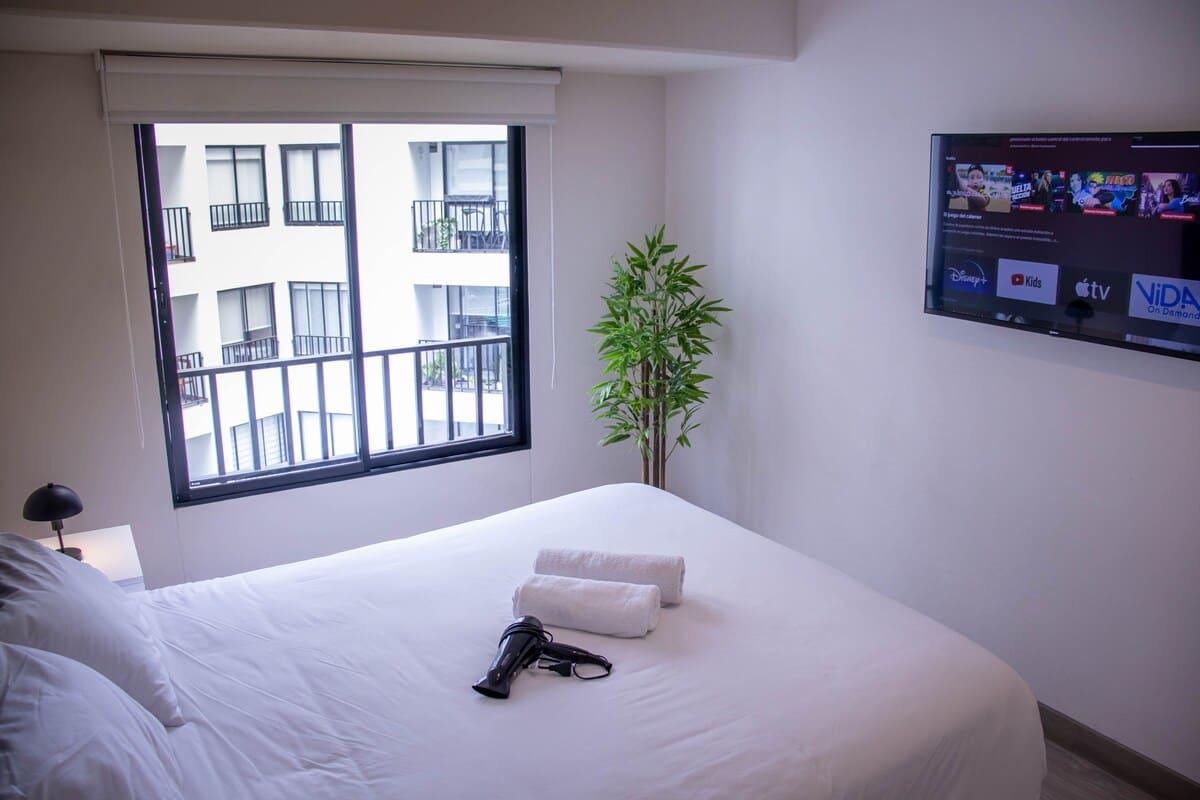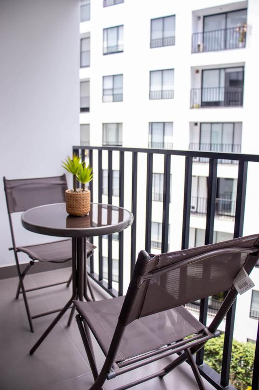 The apartment has 1 bedroom, is fully furnished and is located in the Plaza 27 building.