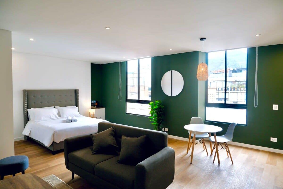 Located in the best area of Bogotá. Ideal for business trips, families and groups of friends who want to stay in a spacious modern 1 Bedroom. You will be walking distance from the shopping center, restaurants, top gyms, supermarkets, bars and coffee shops in the city.