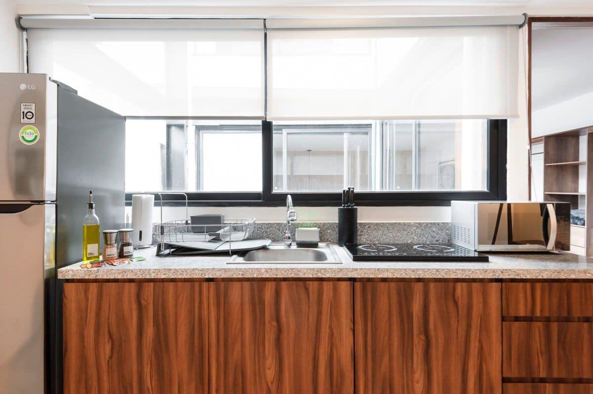 This fully remodeled 1 bedroom apartment is located in the heart of Polanco, a few blocks away from Avenida Presidente Masaryk, the premier shopping street of Mexico City. You'll be surrounded by exclusive stores and upscale international restaurants. This area's leafy side streets host Spanish Colonial Revival mansions and luxury apartments.
