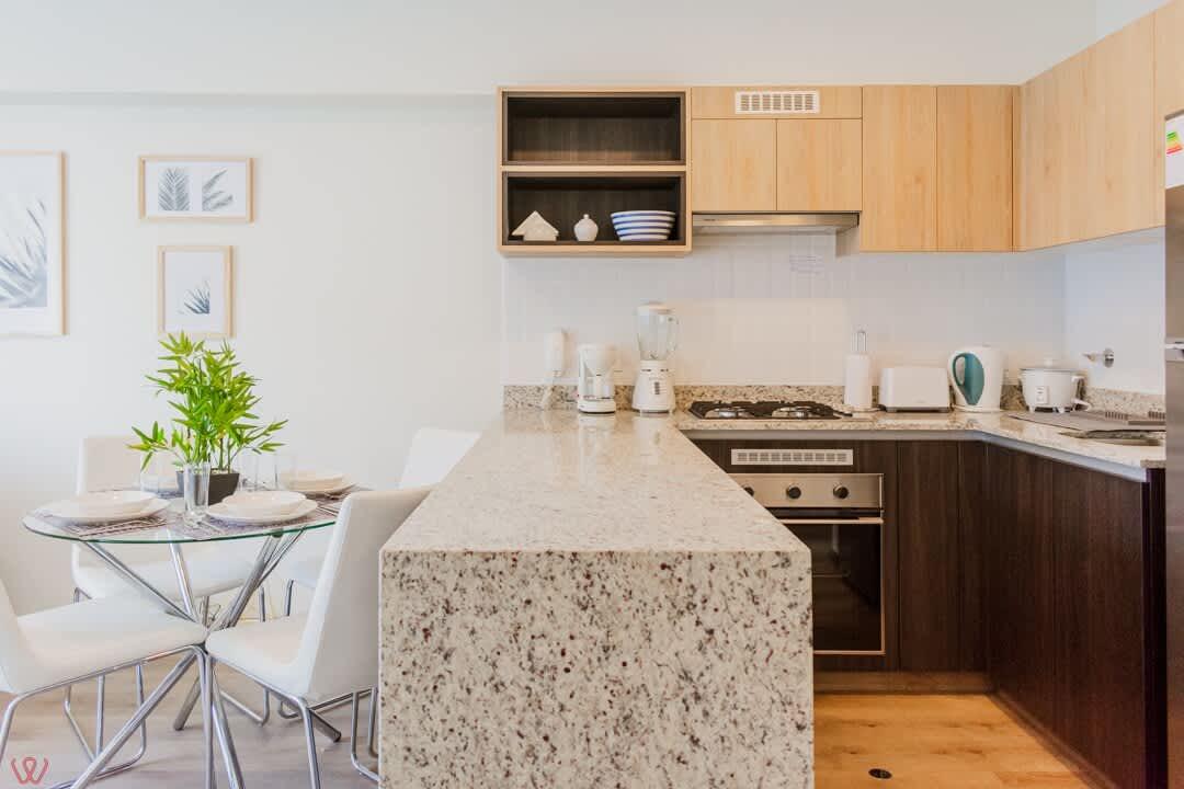 Spacious and well-appointed apartment located at Avenida Pablo Carriquiry 894 in San Isidro. It features one Queen-size bed, one double bed, two full bathrooms, a fully equipped kitchen, a bright living and dining area, and high-speed Wi-Fi. Situated in a secure and peaceful neighborhood, close to business centers, parks, restaurants, and public transportation.