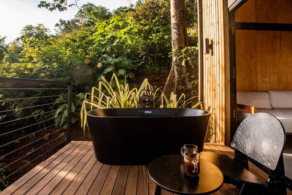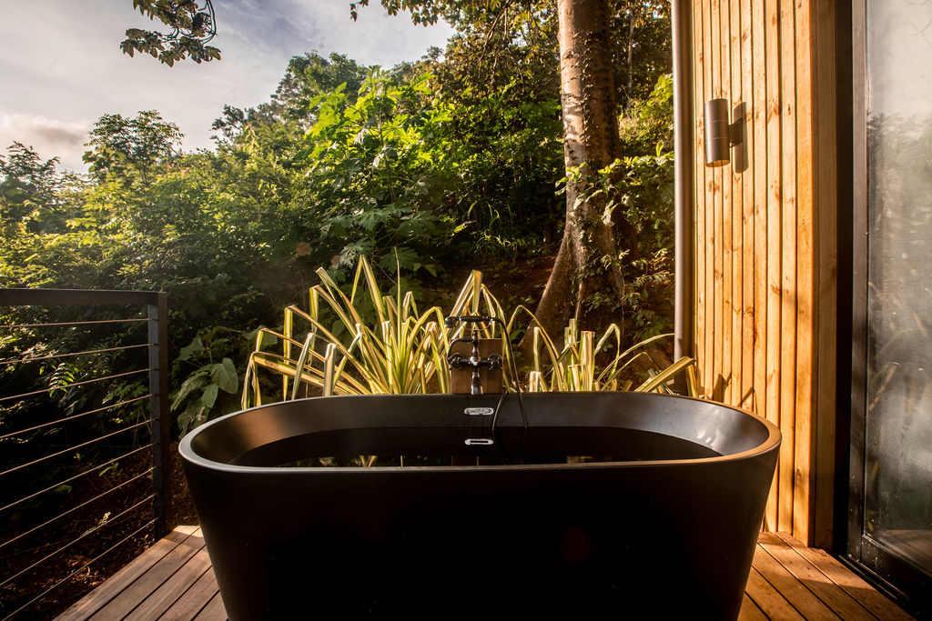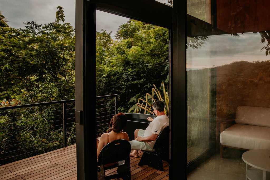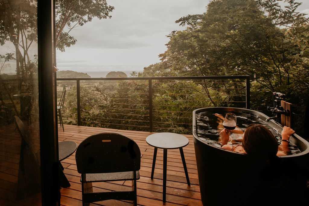 Outside, the charm continues: a private terrace surrounded by greenery invites you to relax with a coffee or a good book, breathing in fresh air and soaking in the natural views. At the end of the day, unwind in the outdoor tub/jacuzzi while the warm water and starry sky do the rest.