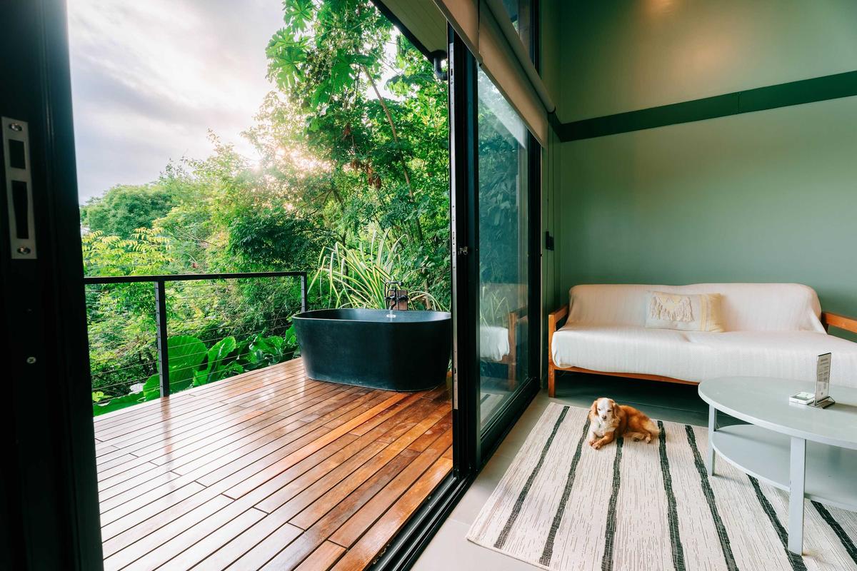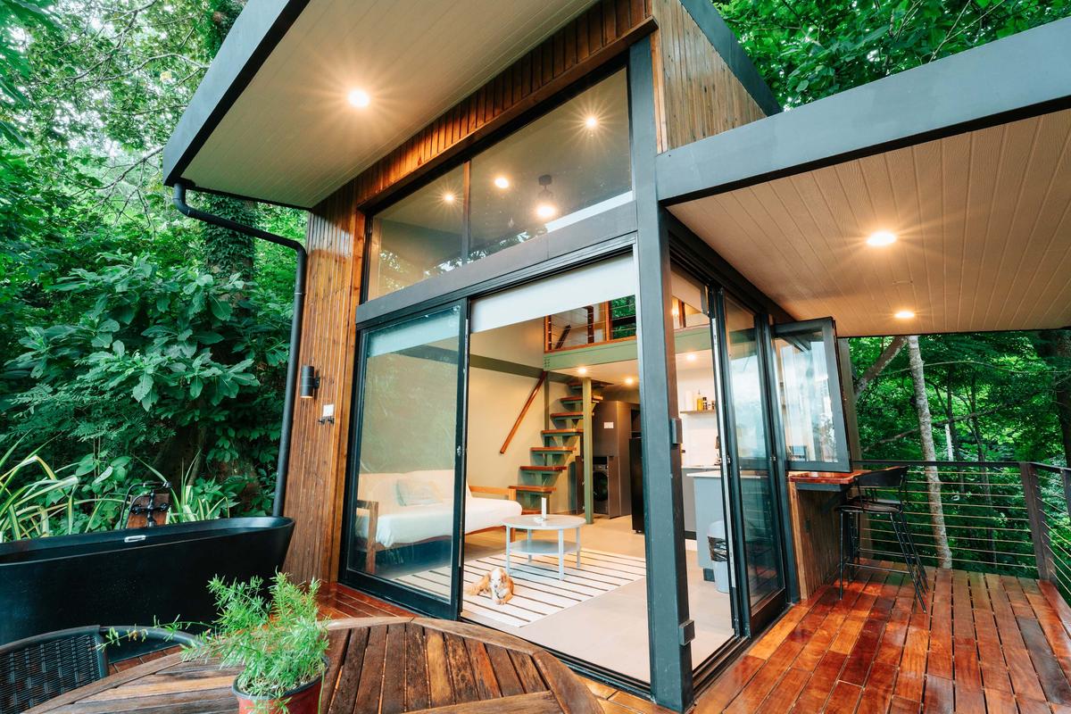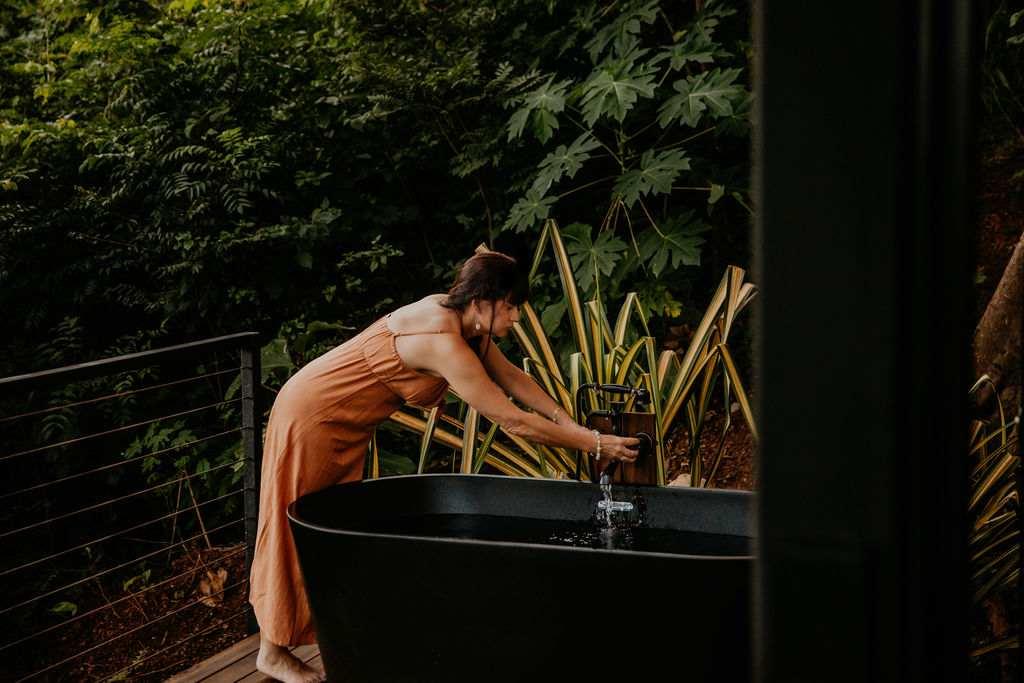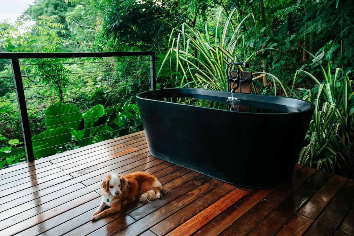 Outside, the charm continues: a private terrace surrounded by greenery invites you to relax with a coffee or a good book, breathing in fresh air and soaking in the natural views. At the end of the day, unwind in the outdoor tub/jacuzzi while the warm water and starry sky do the rest.