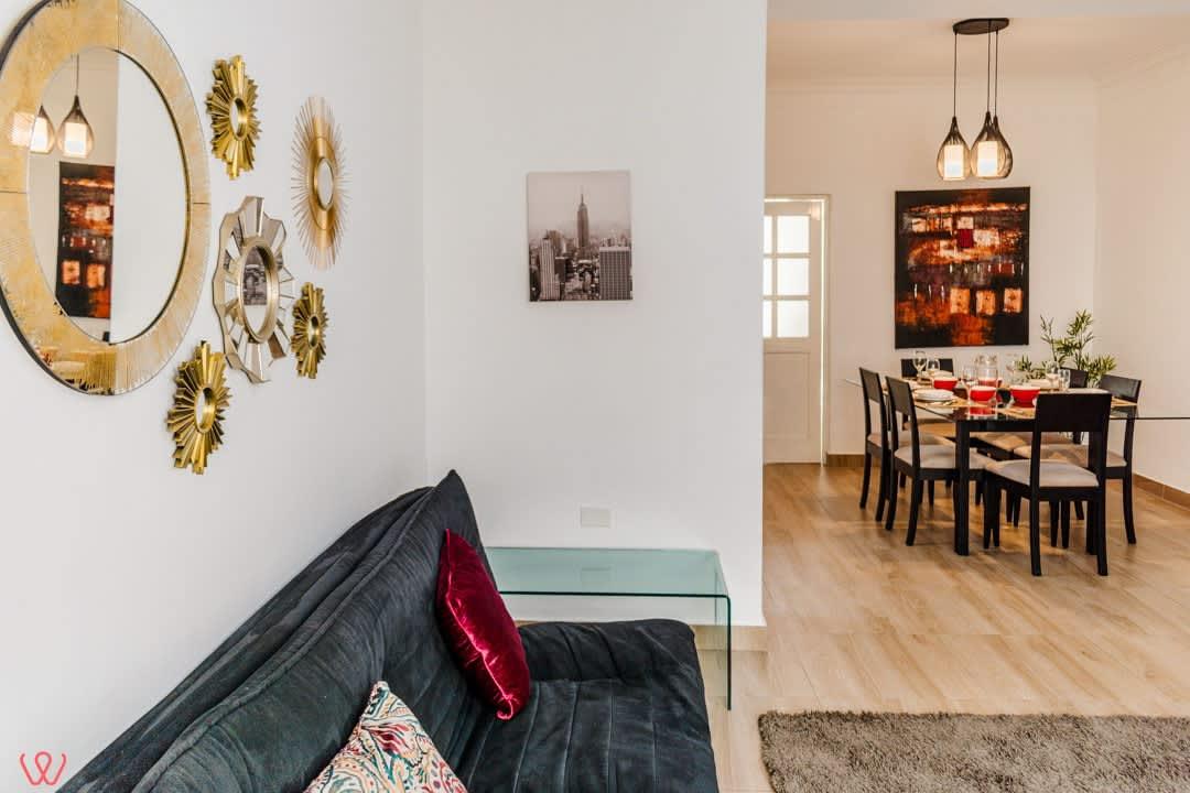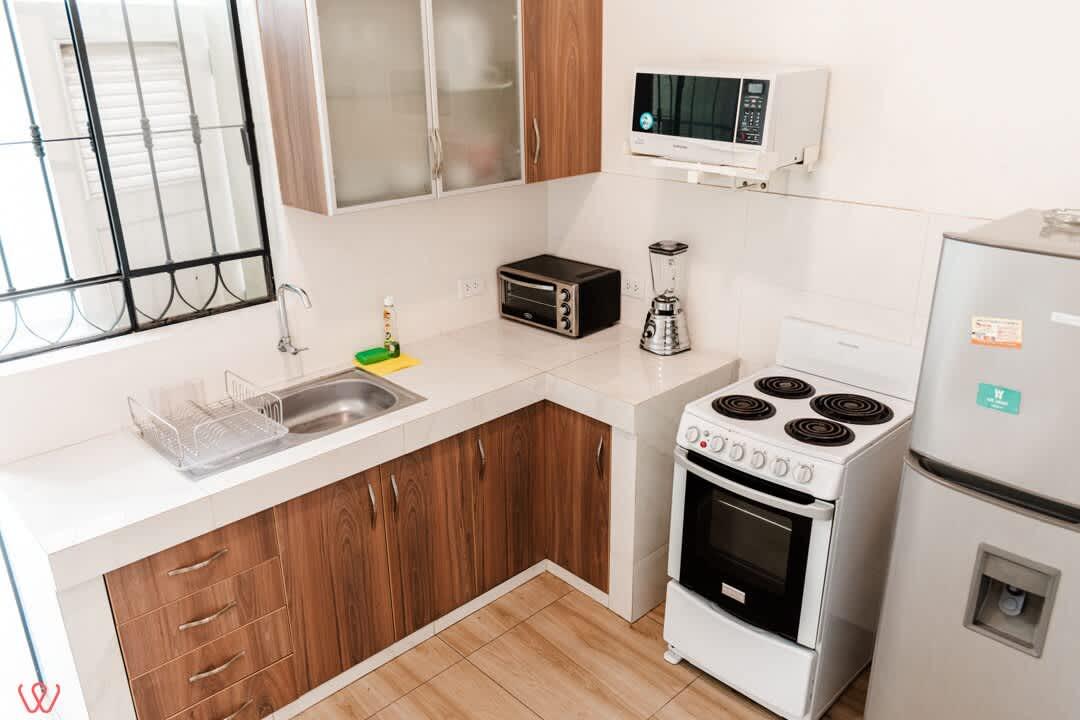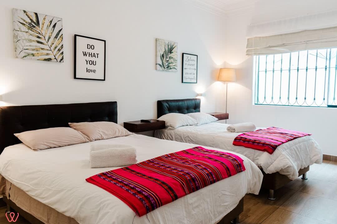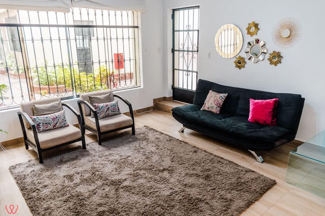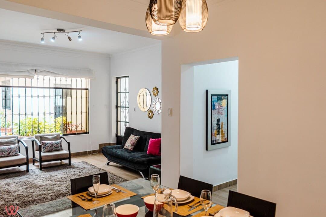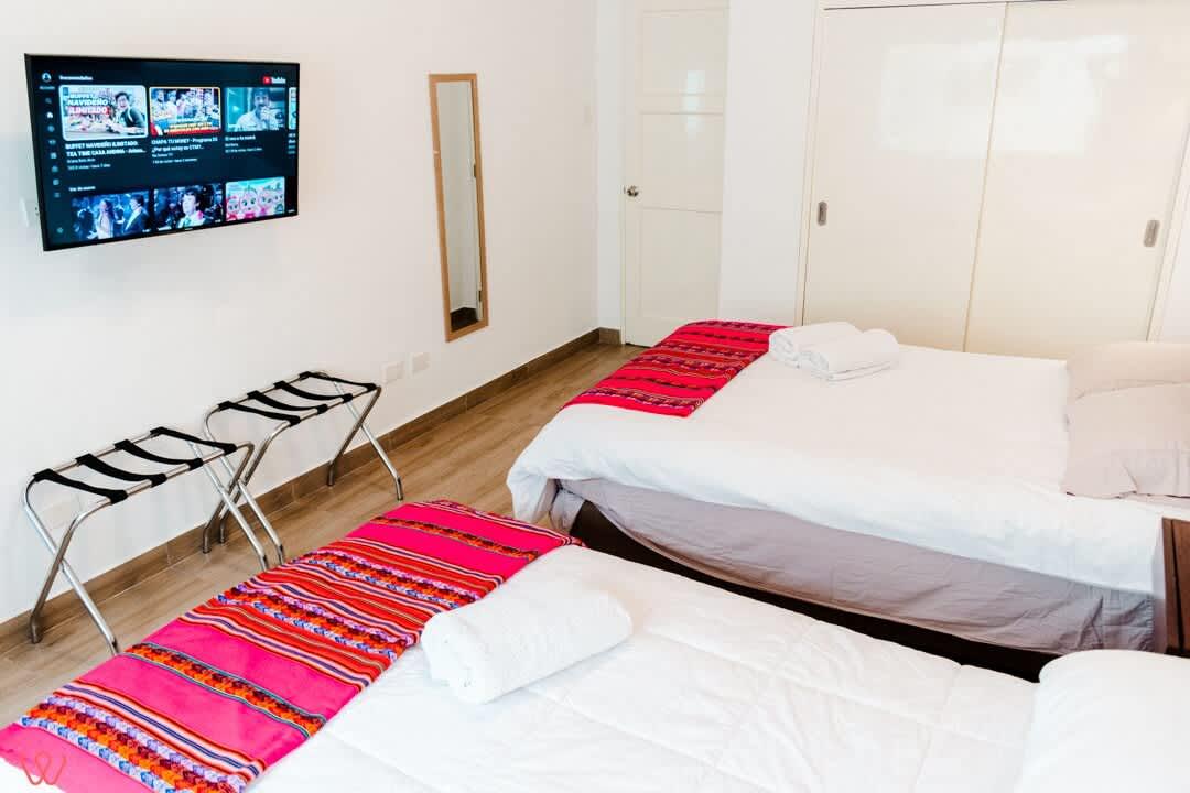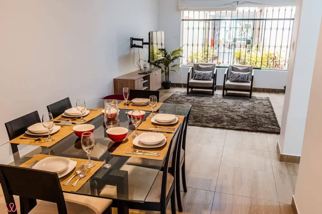 Departamento en un primer piso en Larco. El dpto es amplio y acogedor, la habitación principal cuenta con 2 camas. Una doble y otra individual. Contamos con una TV Smart. Cocina equipada, agua caliente y wifi.