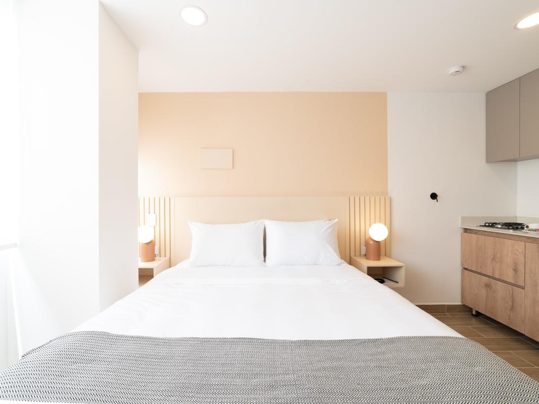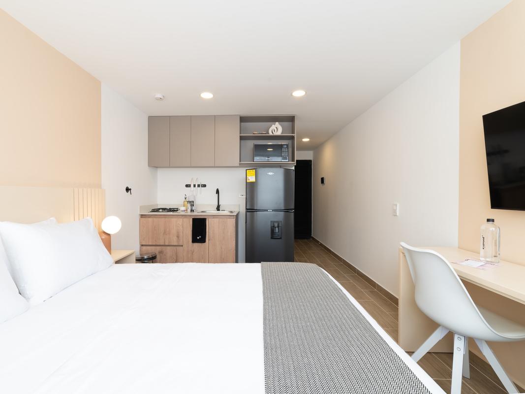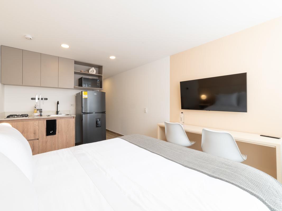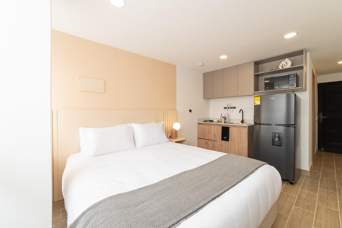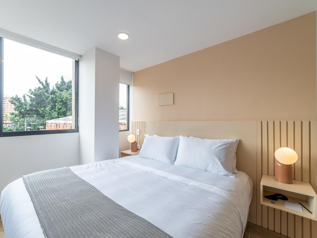 Located in the best area of ​​Medellin. This modern loft features, a queen size bed, a welcoming living room and a beautiful balcony. Ideal for business trips, families and small groups of friends who want to stay in a modern apartment with a great location. You will be walking distance to typical Colombian and international food restaurants, supermarkets, local art galleries, bars and cafes in the city.