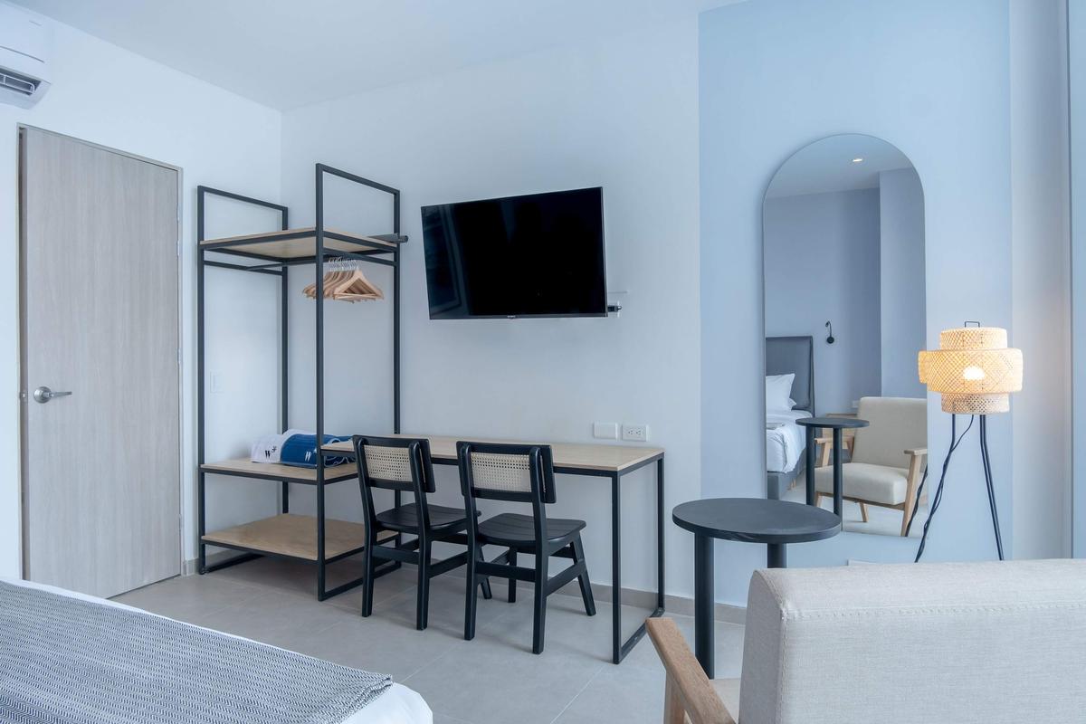 This modern and cozy apartment is located in the heart of Cartagena de Indias, at Carrera 2 #10-113, just minutes away from the city’s main tourist attractions and beaches.My apartment is located within the San Martin building, right next to the Farmatodo store. Perfect for those looking to enjoy the warmth of the Caribbean with the comfort of a functional and well-decorated space. With capacity for 4, it offers everything needed for a memorable stay, featuring contemporary décor, quality services, and a prime location in the city center. Please take in consideration that during your stay, no visitors or updates are allowed.