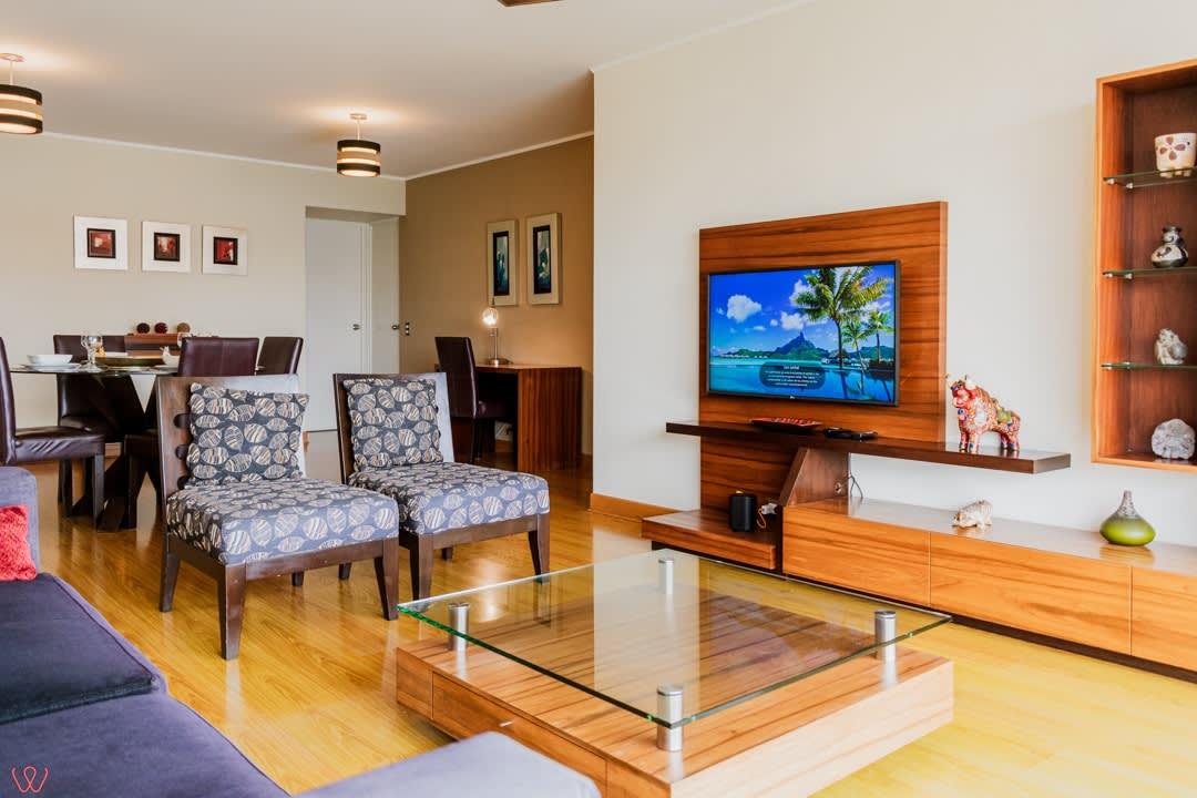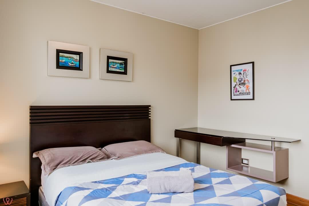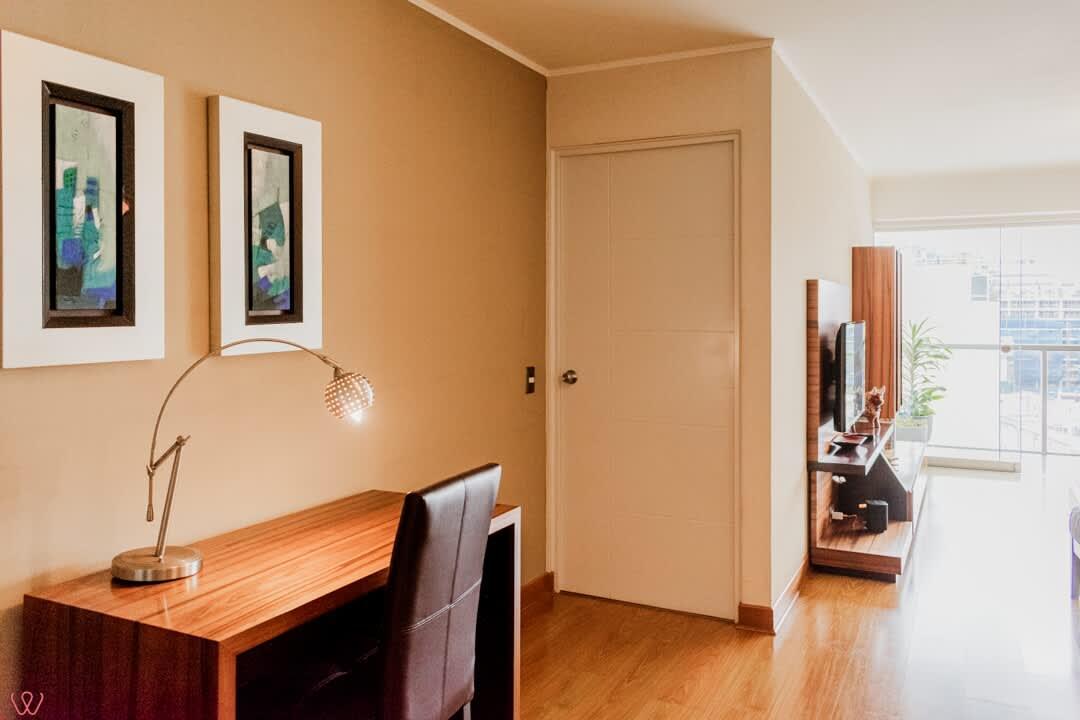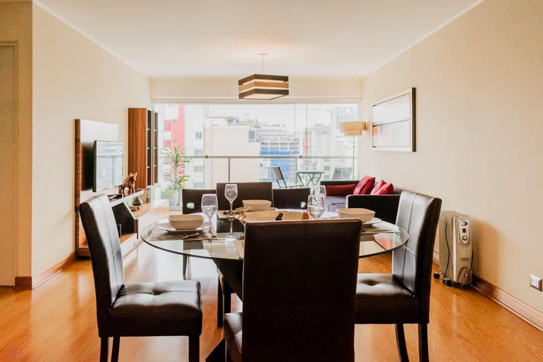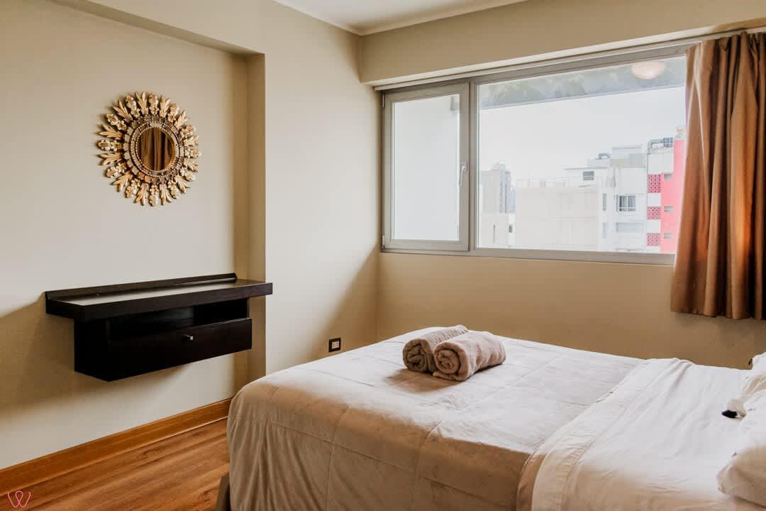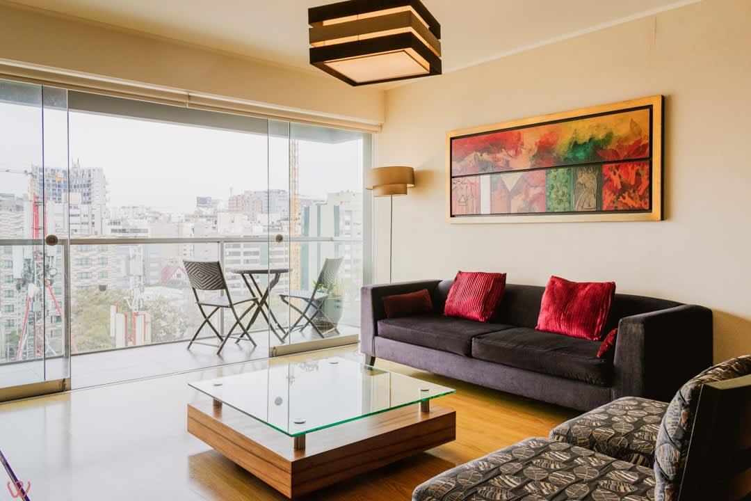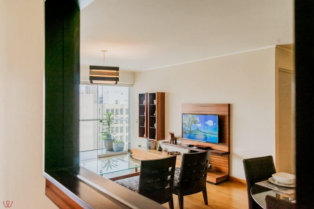 Enjoy this charming apartment located in the best area of Miraflores, close to the finest shops, restaurants, and entertainment spots. Perfect for those seeking comfort and convenience in a vibrant setting. This space features 2 master bedrooms, 2 full bathrooms, a balcony, and parking. Don't miss out!