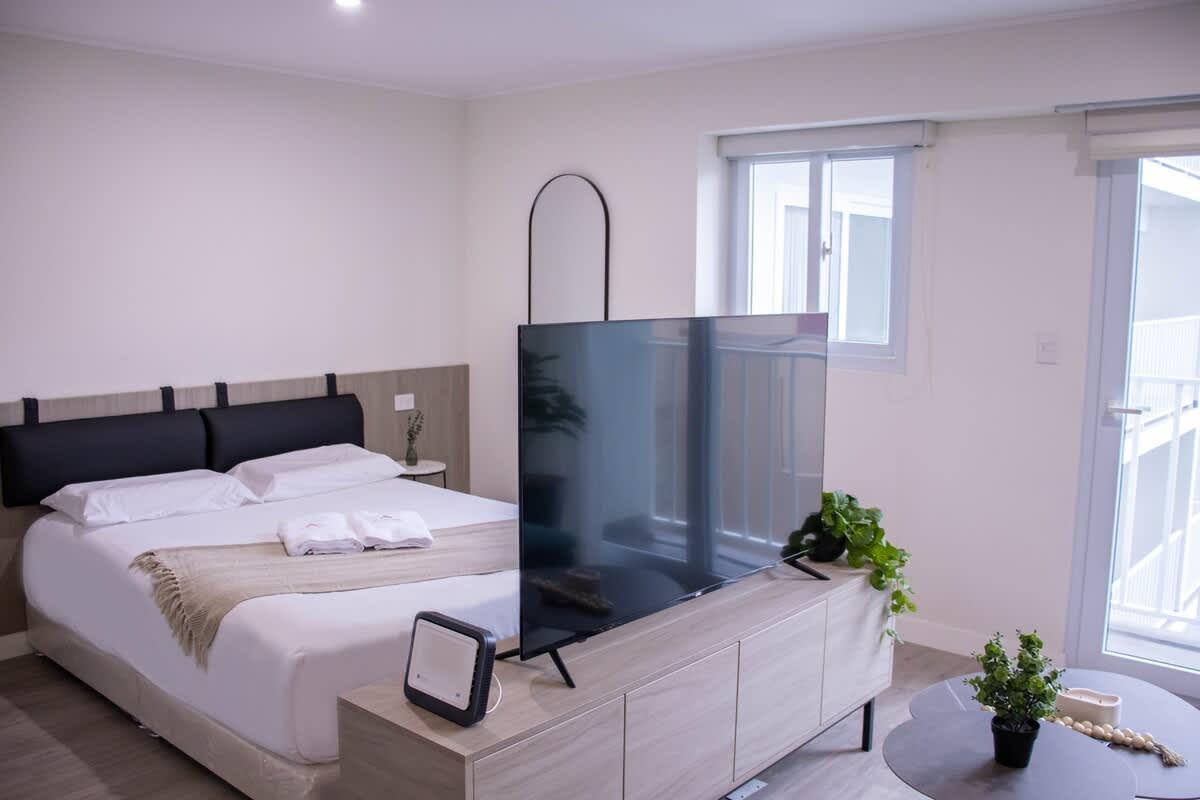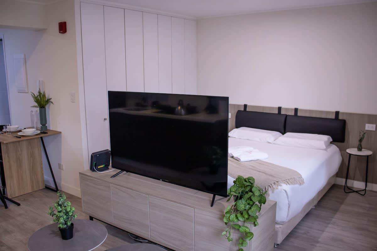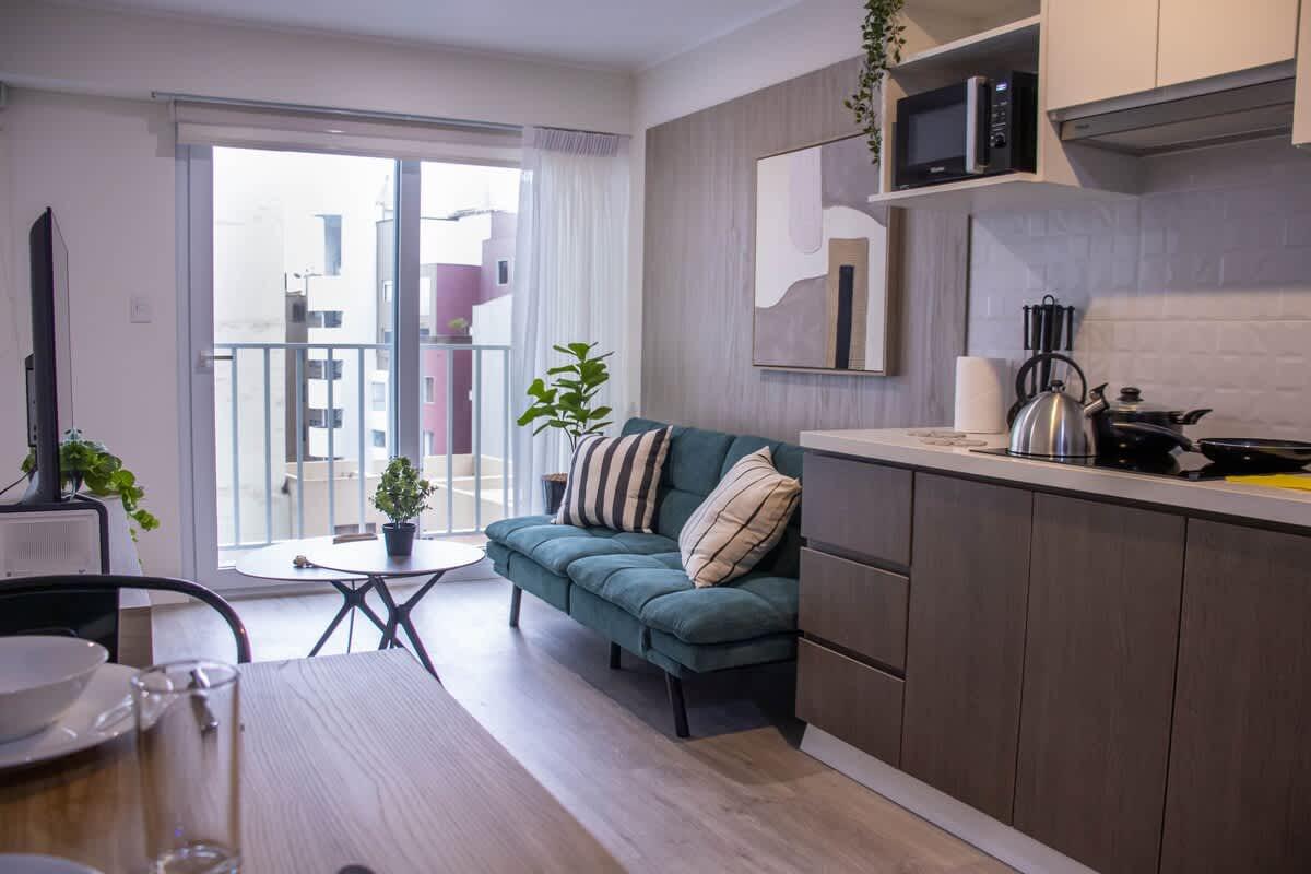 Moderno y acogedor estudio en The Sight, edificio exclusivo en Barranco. Ideal para parejas o viajeros solos. Equipado con cama queen, kitchenette, y Wi-Fi rápido. Disfruta de piscina, gimnasio, terraza y seguridad 24/7. A pasos del malecón, cafés, galerías y lo mejor de Barranco. Perfecto para descansar, explorar o trabajar cómodamente.