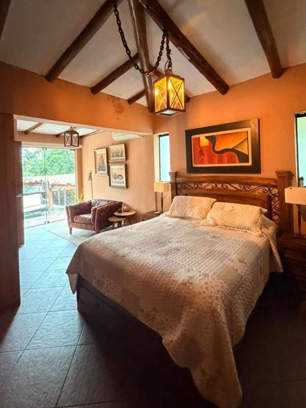 It also features a swimming pool with lounge chairs, an adult game area (pool table, foosball, sapo, ping pong, and poker), and a children’s play area with a bouncer, seesaw, Little Tikes toys, and a zip line. The property also has a lagoon and direct access to the river.