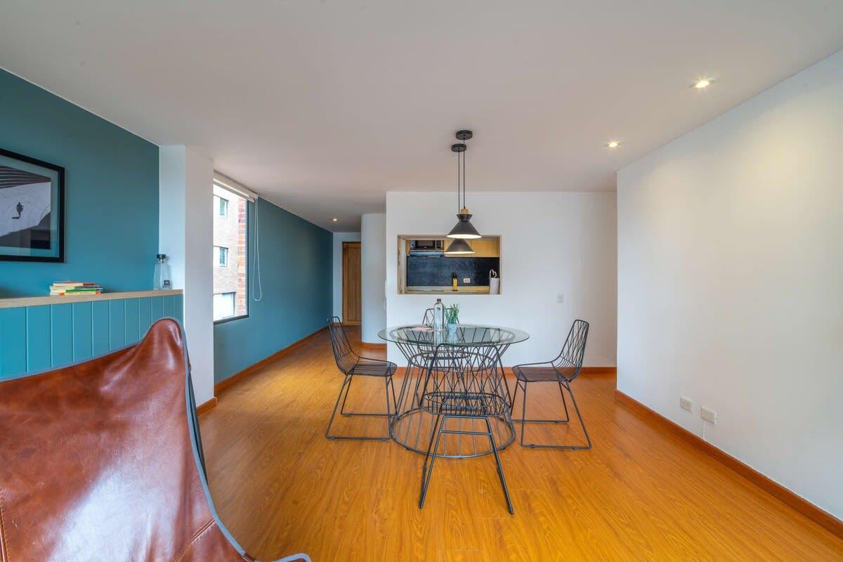 Located in the best area of Bogotá, near Parque Virrey. Ideal for business trips, couples or solo travelers who want to stay in a spacious modern Penthouse with a private terrace. You will be walking distance from the shopping center (Andino), restaurants, top gyms, supermarkets, bars and coffee shops in the city.