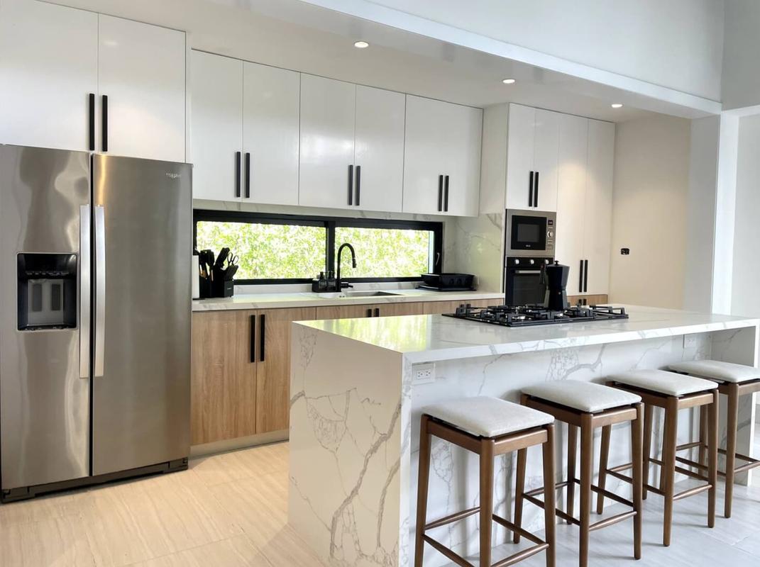 The modern, fully equipped kitchen makes it easy to prepare meals—from light breakfasts to special dinners. The outdoor spaces are designed for total enjoyment: a brand-new private pool invites you to cool off or simply relax under the Caribbean sun, with the option to use a heater for an additional cost of 60 USD per hour. The fully equipped barbecue area is perfect for outdoor gatherings, and the covered terrace with comfortable furniture becomes the ideal spot to read, chat, or unwind.