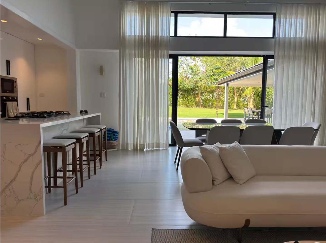Discover the perfect balance between luxury, comfort, and modern design in this elegantly renovated villa located in Green Village, Cap Cana. With four spacious and stylishly decorated bedrooms, this property is the ideal getaway for families or groups of friends looking to unwind in an exclusive setting. The living room seamlessly connects to the covered terrace, creating a cozy and open atmosphere where you can enjoy the tropical breeze and share unforgettable moments.
