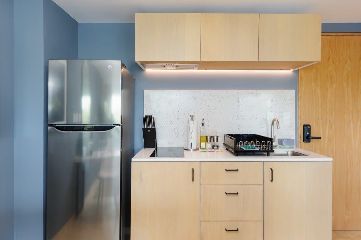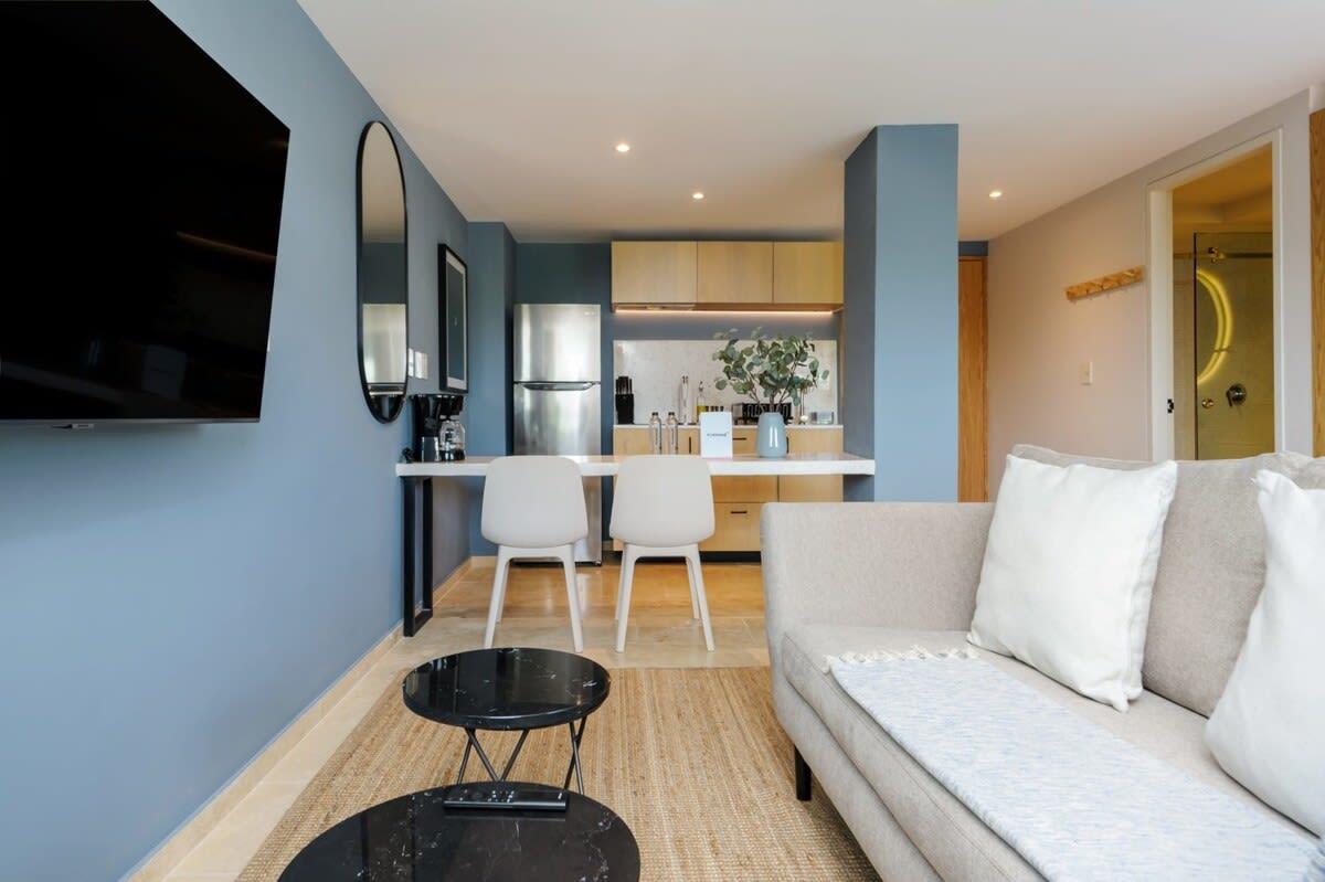 This loft is located in the center of Mexico City's culinary and artistic zone, Roma Norte, being home to bicycling hipsters and an increasing numbers of young professionals. The building where this property is located is temporarily under construction.