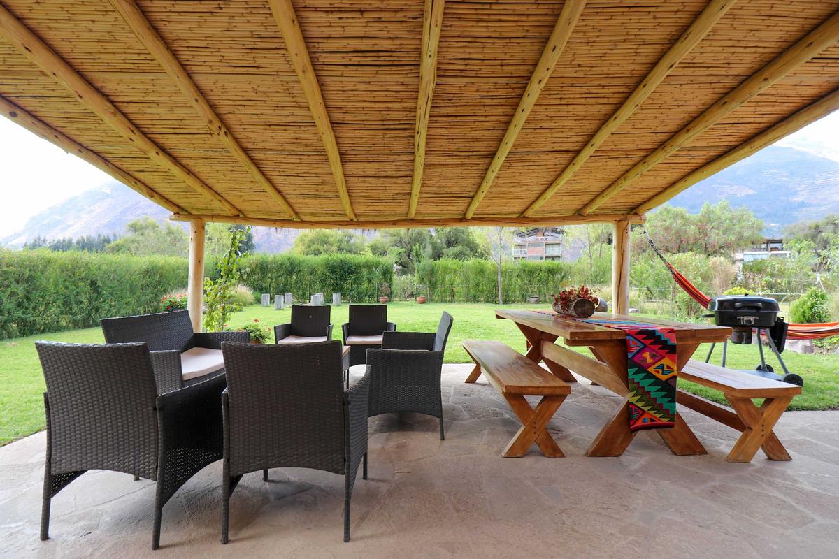 This charming house, designed with exquisite taste that blends Cusqueño and modern styles, offers a cozy retreat with three fully equipped bedrooms. The living room, adorned with a warm fireplace, along with a well-equipped kitchen and a comfortable dining area, creates an ideal setting for sharing special moments with family and friends. On the second floor, you'll find a living area with views of the beautiful landscapes, the perfect spot to relax while watching Netflix and enjoying some hot popcorn. The gardens, one of the house's highlights, invite you to enjoy various options for relaxation and entertainment. Unwind in the hammocks, host a barbecue in the grilling area, or have fun with the traditional game table. The impressive fire pit area is the ideal setting for unforgettable afternoons and evenings, surrounded by a spectacular landscape that enhances the magic of every moment. The house will be available based on the number of people confirmed in the reservation.