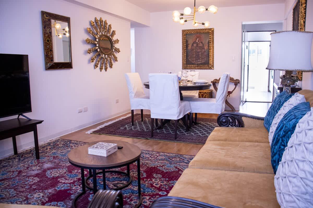 Disfruta Lima desde un departamento amplio y acogedor, con decoración clásica y lleno de carácter. Ubicado en pleno San Isidro, sobre Av. Camino Real y a pocos pasos de la calle Dasso, estarás rodeado de restaurantes, cafés, bancos. Un espacio perfecto para familias, grupos o viajeros de trabajo que buscan comodidad y una ubicación privilegiada.