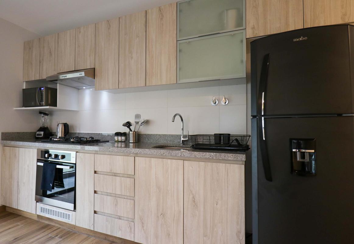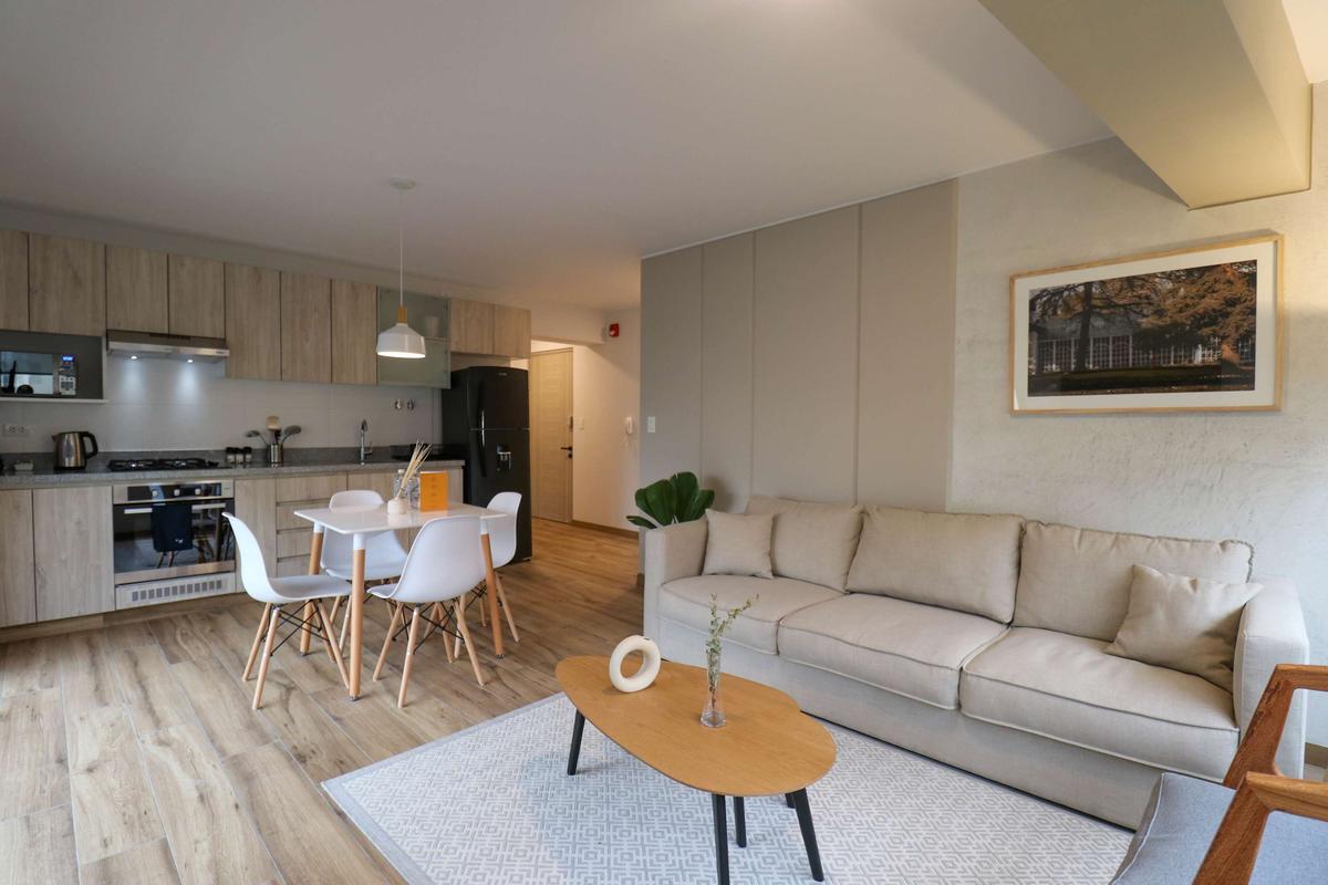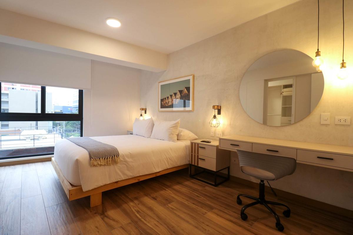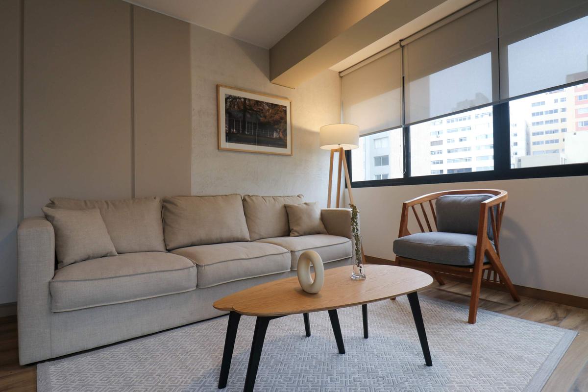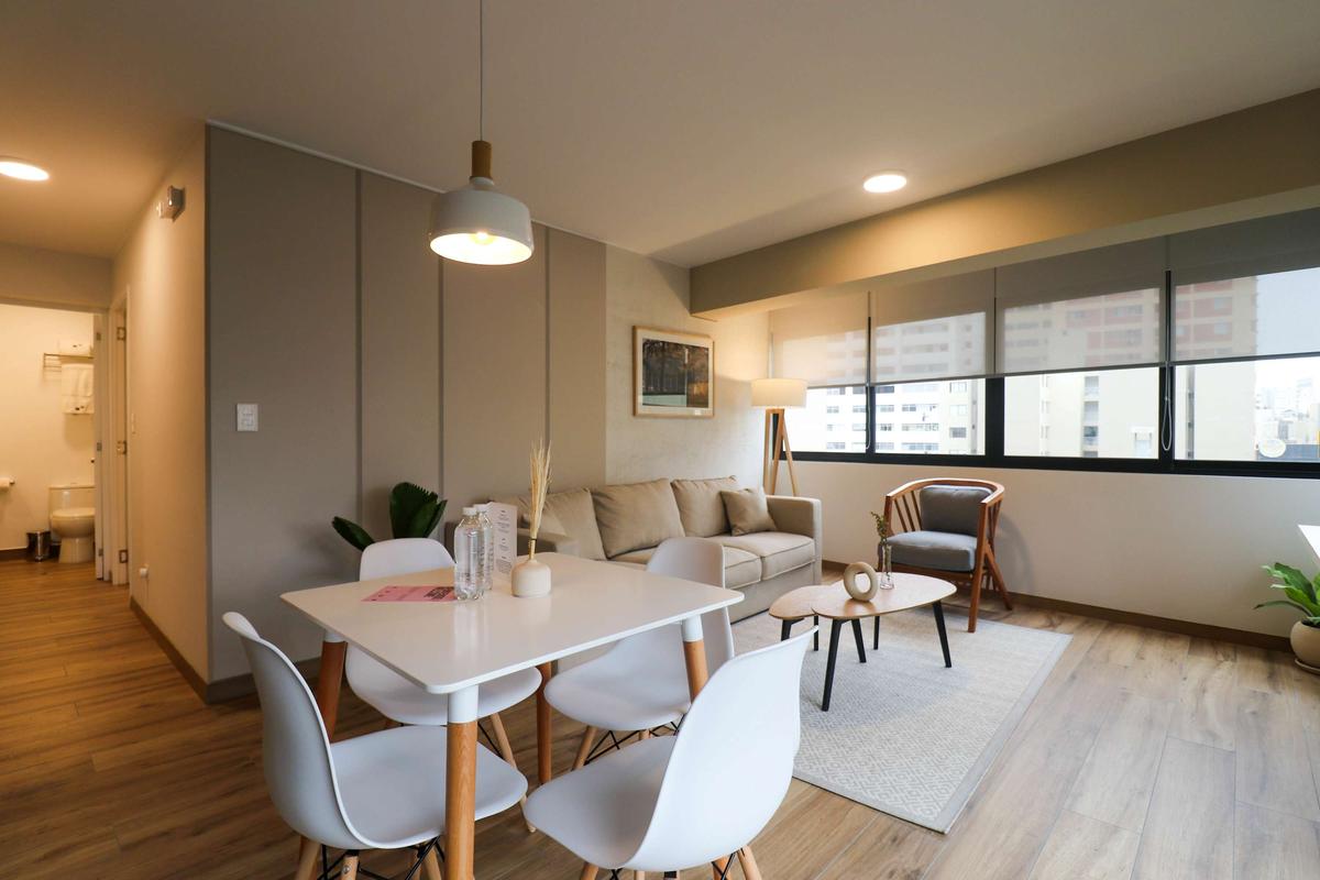 In the welcoming Miraflores neighborhood, this beautiful apartment it's very well located; just minutes away from Larcomar shopping center, Parque Kennedy, Virgen de Fatima Parish, and exclusive gyms. The area has currency exchange services, and labs centers in case you need to take a test, such as ROE and Multilab.