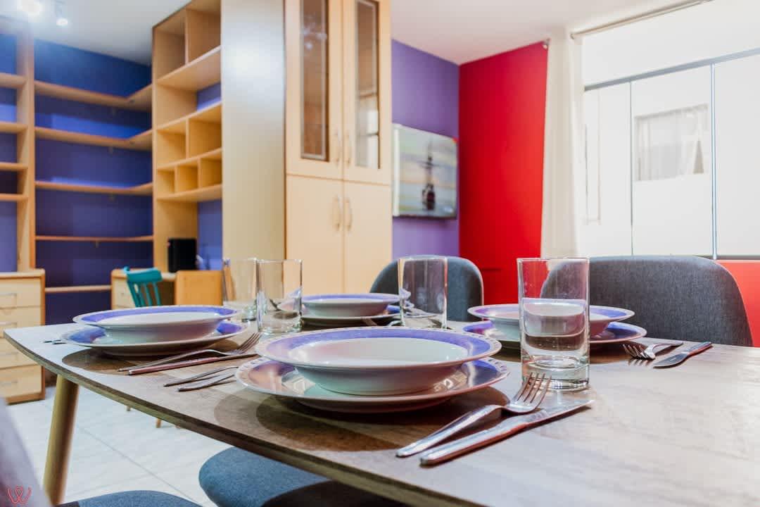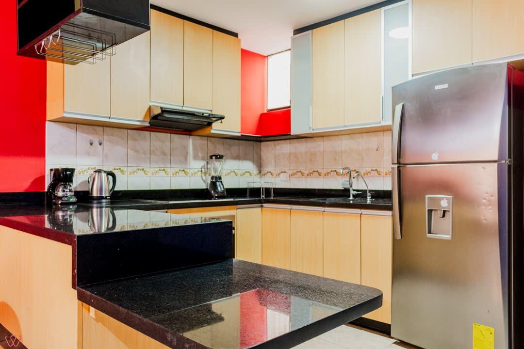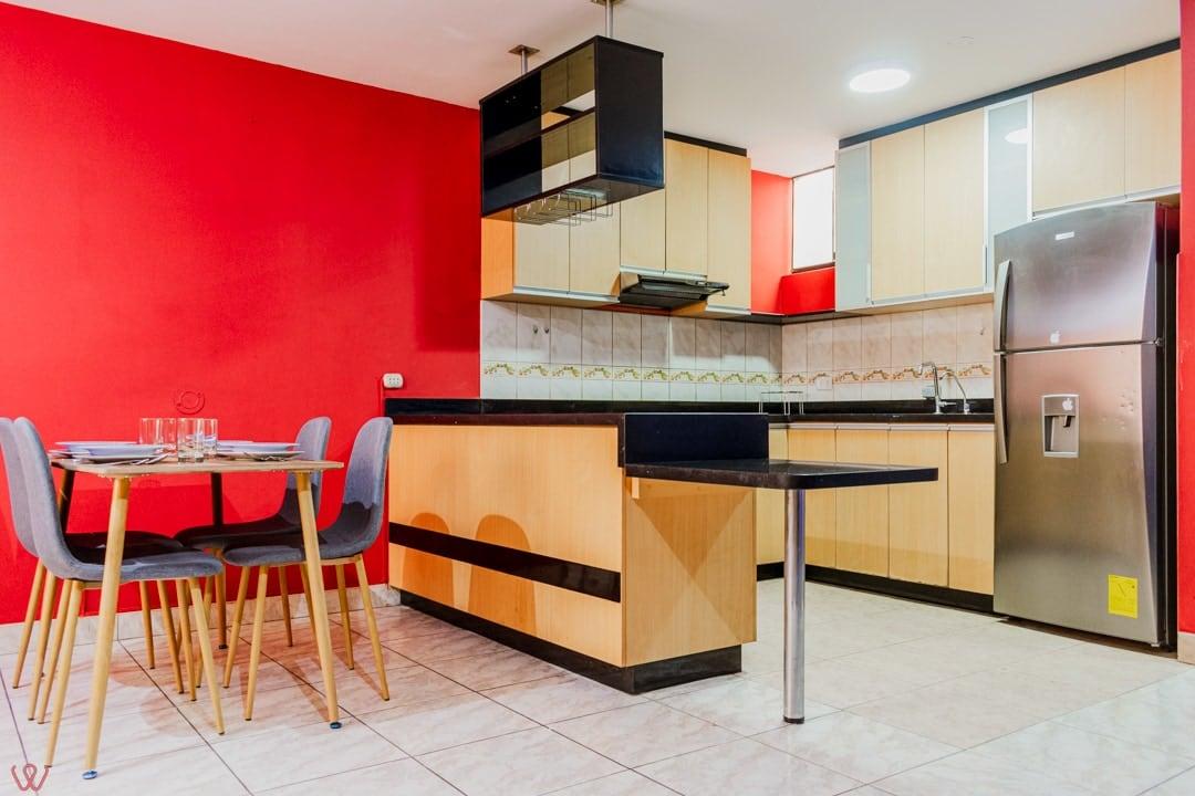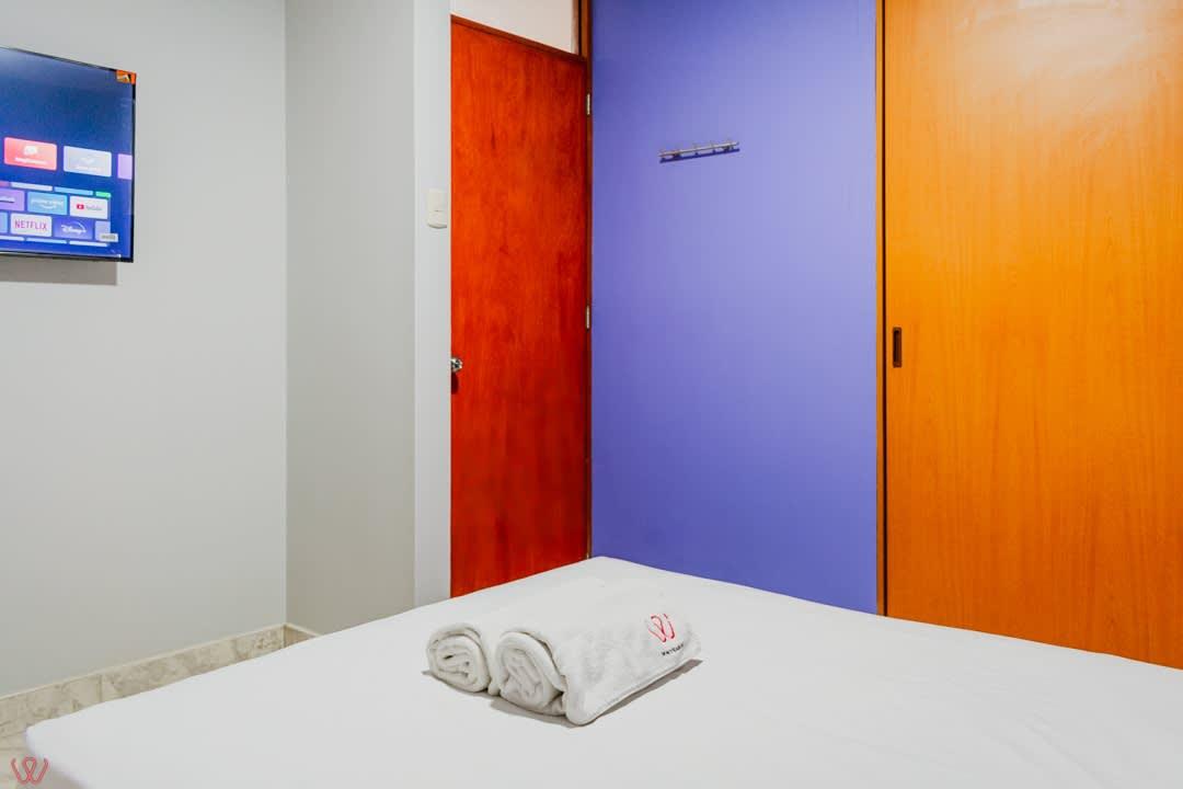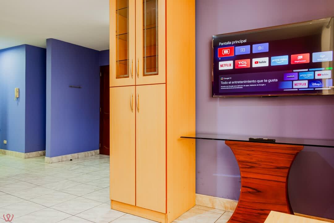 Bright and spacious two-bedroom apartment in Surquillo. One room has a Queen bed, the other a double bed, and there is a sofa bed in the living room. Includes 2 full bathrooms, a fully equipped kitchen, and dining space for up to 6 guests. Located near major attractions, local markets, and the Miraflores coastline. Ideal for short or long stays.