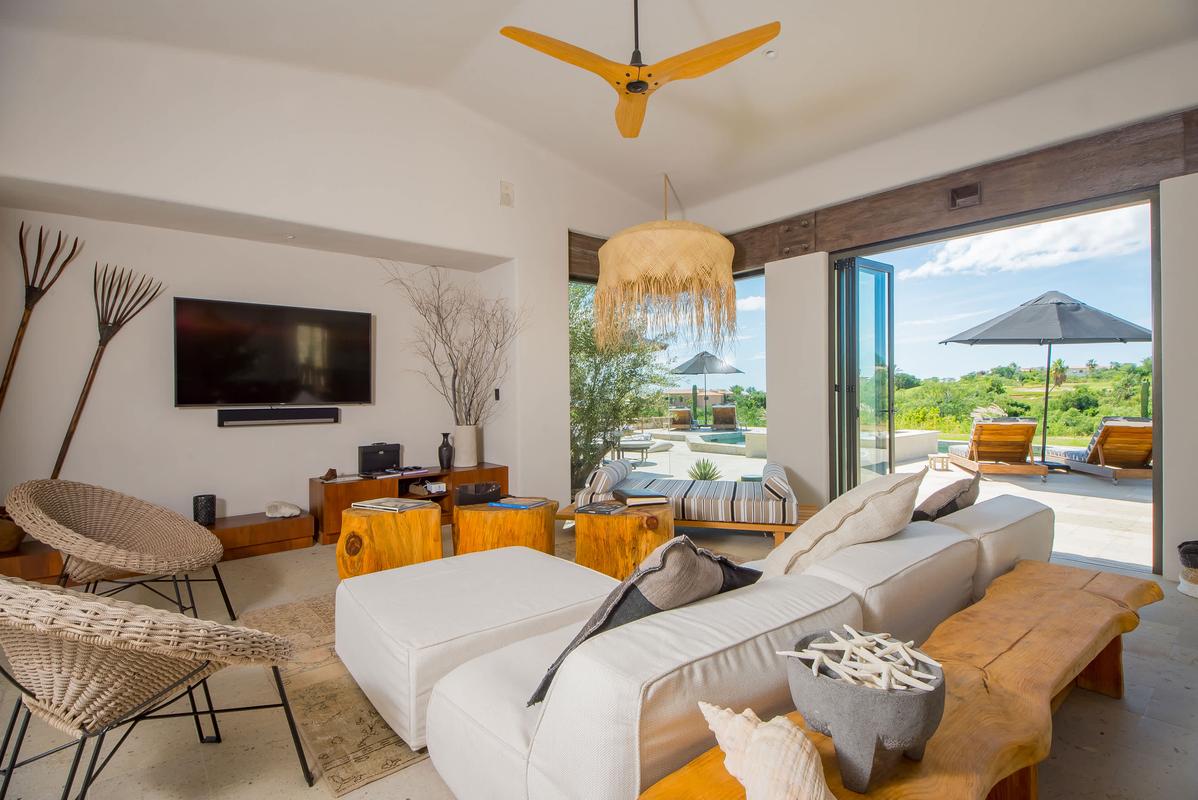 Relax in the luxurious spaces of this beautiful villa, located in the prestigious Cabo del Sol community. With a minimalist design and soothing tones, this retreat offers the perfect blend of privacy and comfort for an unforgettable vacation.