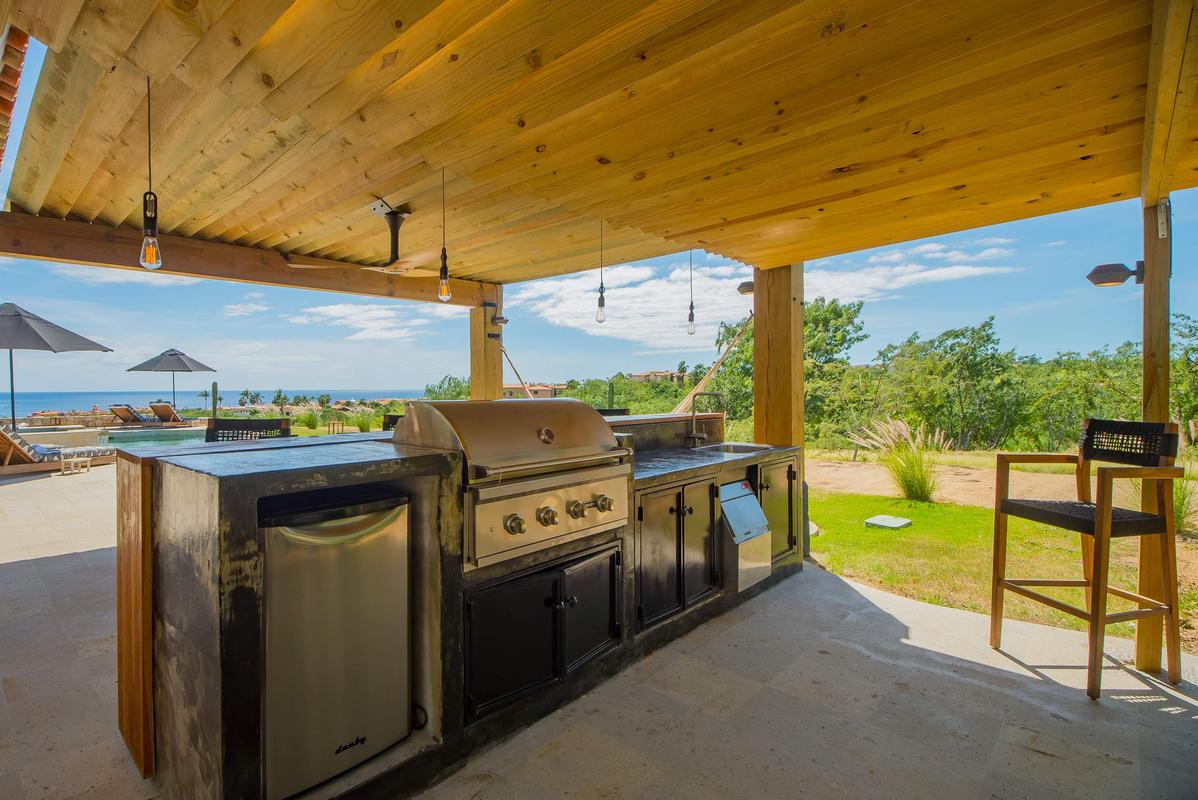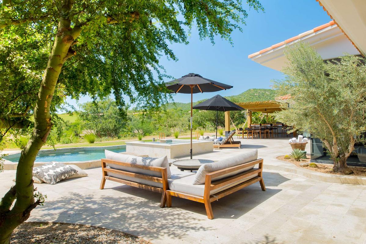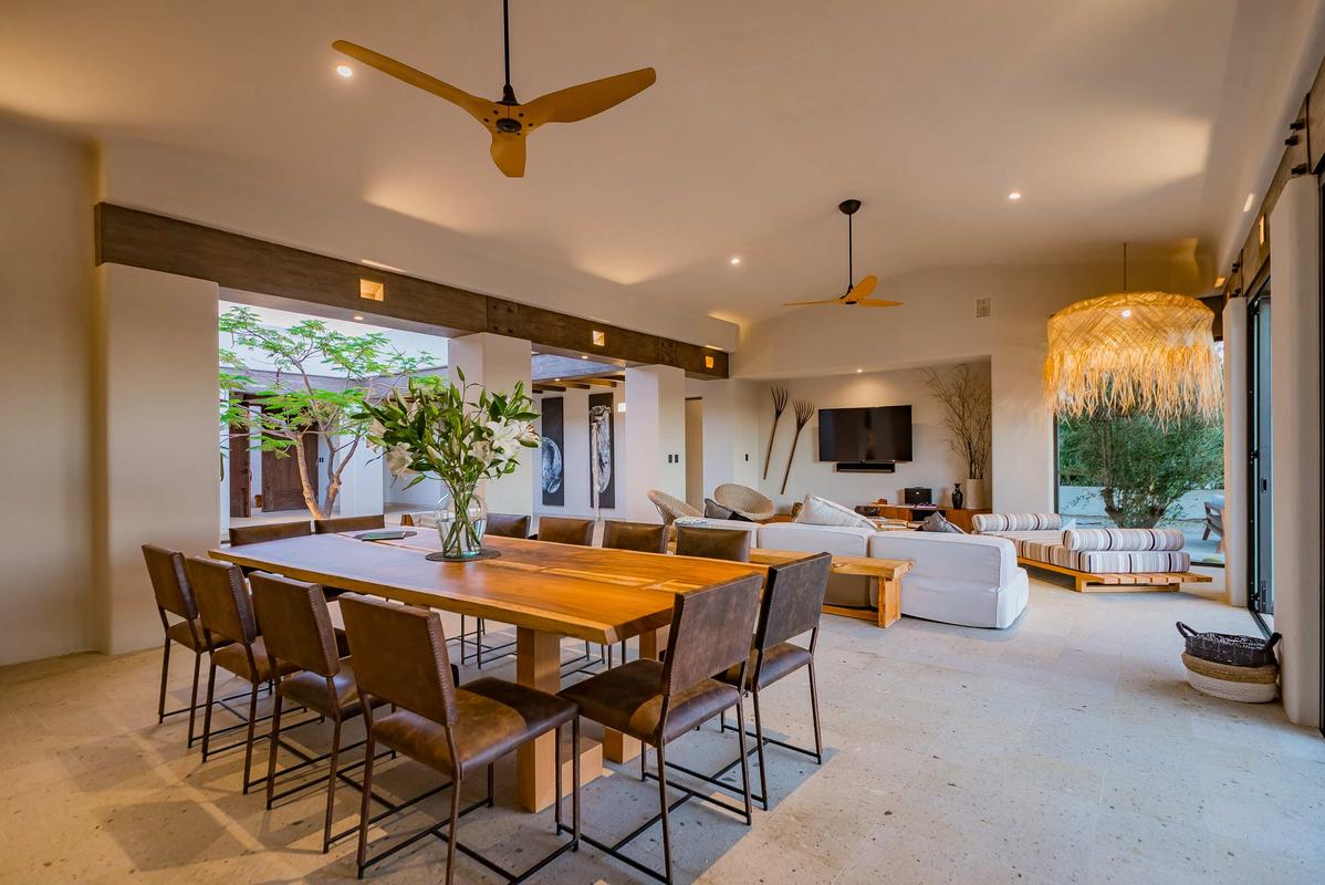 The villa features 5 bedrooms and 5 bathrooms, accommodating up to 12 guests. Spend your days in the heated pool, feeling the ocean breeze and taking in the stunning views of the Sea of Cortez on one side and the lush golf course on the other. At night, unwind by the fire pit under the stars or share laughter with loved ones in the outdoor spaces. The villa also includes a jacuzzi, an outdoor dining area for 10, an open-air kitchen with BBQ, sun loungers with umbrellas, and a lounge area with fire pit—perfect for enjoying outdoor living.