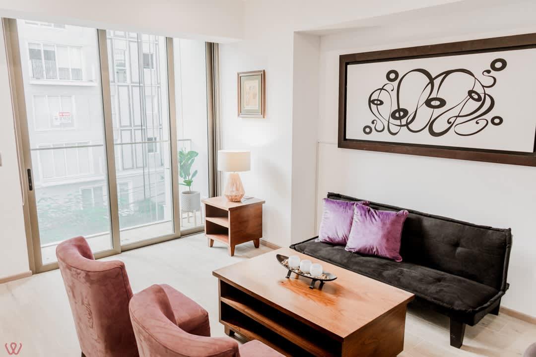 Inviting apartment in Barranco, perfect for up to 3 guests. It features a Queen bed, one full bathroom, and high-speed Wi-Fi. Located in one of Lima’s most artistic districts, just minutes from parks, cafés, and the iconic Puente de los Suspiros.