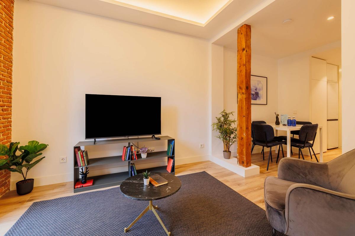 The apartment is located in the most turistic area of the heart of Madrid, only meters away from lovely restaurants, exclusive stores, historical sculptures, classical theaters, among other attractions.