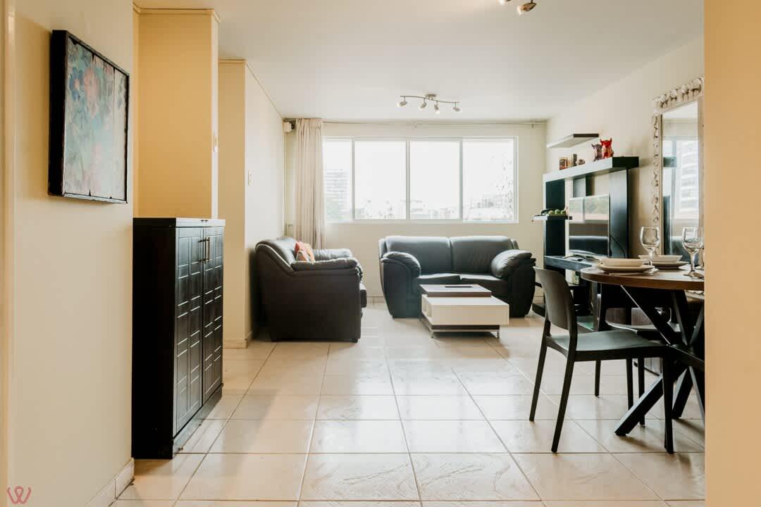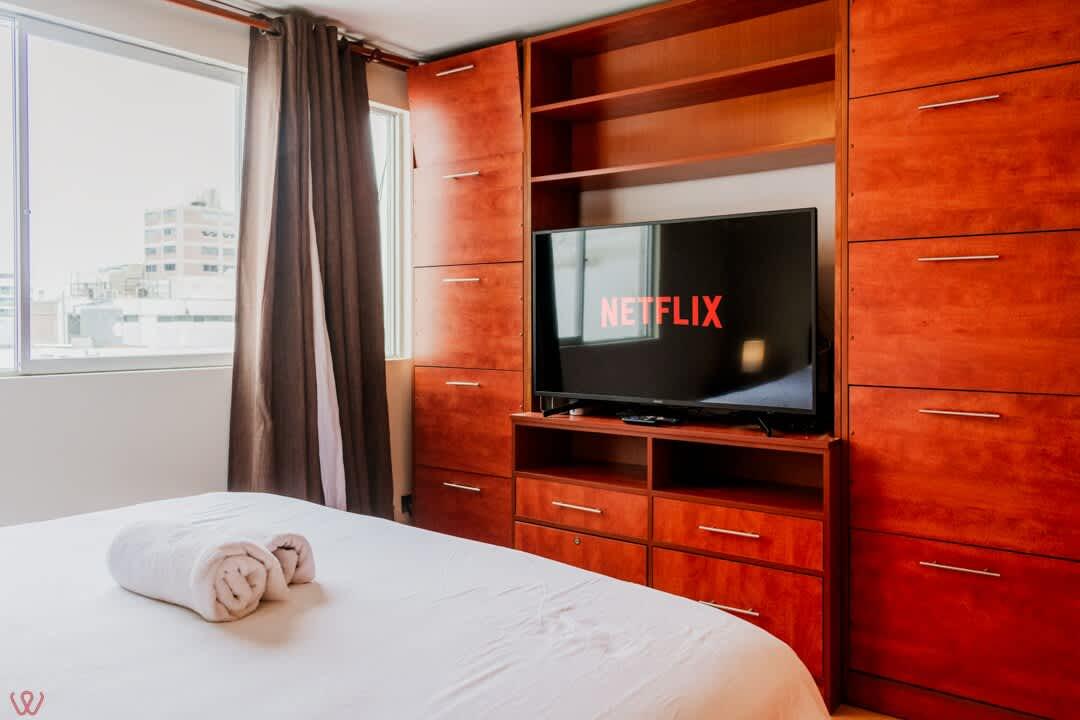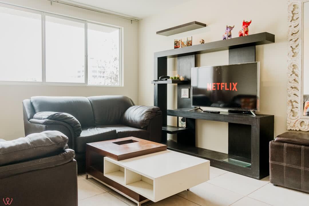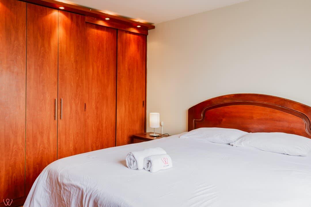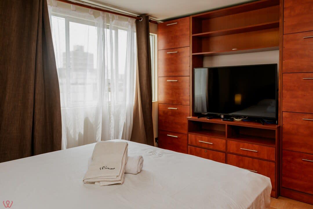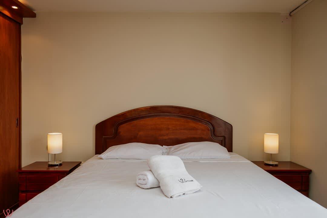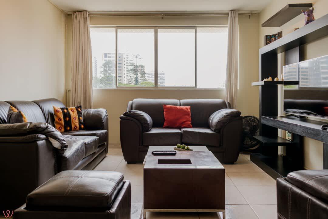 Departamento ubicado en Miraflores, acondicionado para 4 huéspedes con 1 cama matrimonial y 2 camas individuales.
