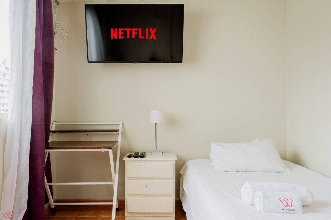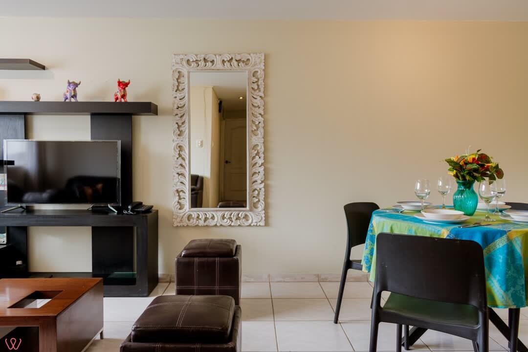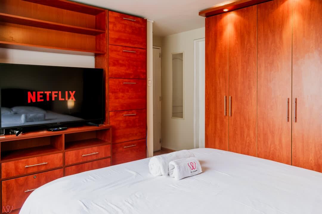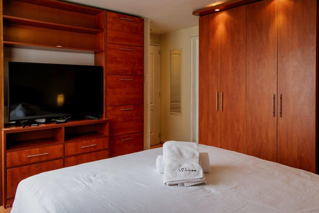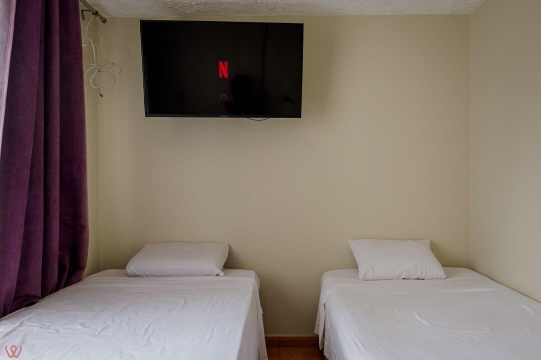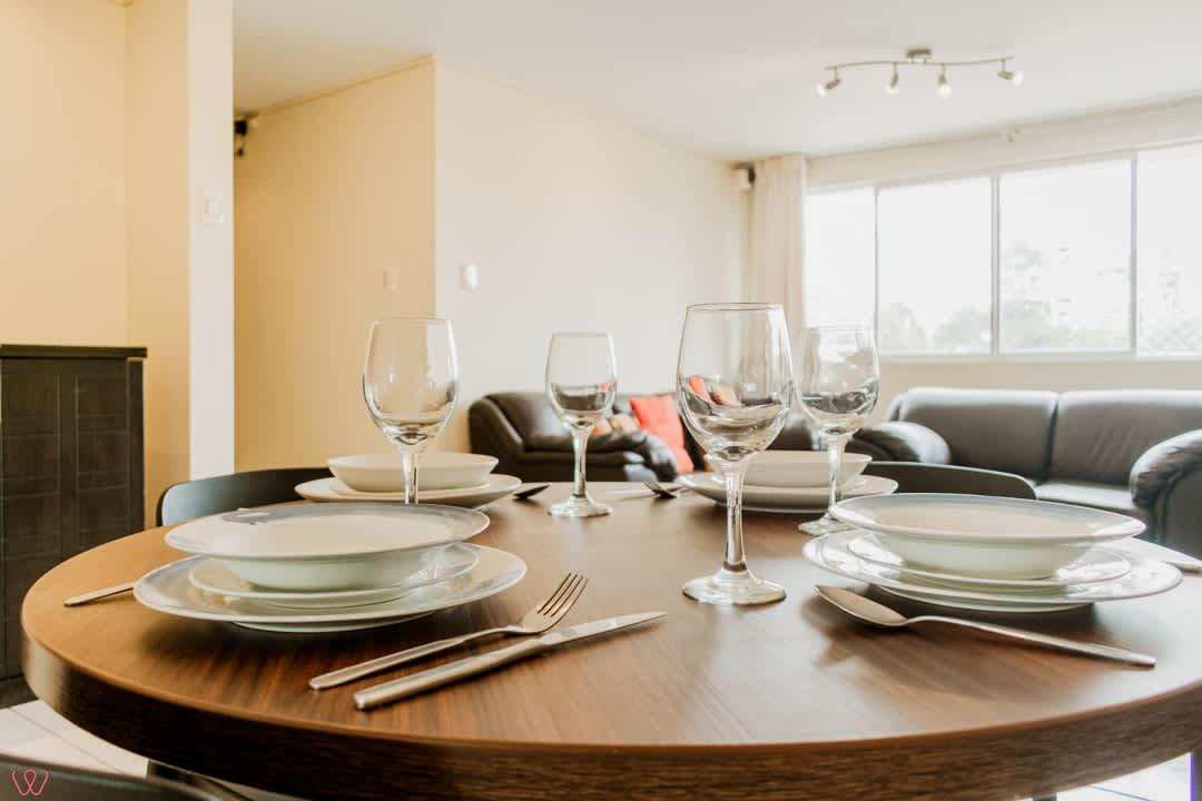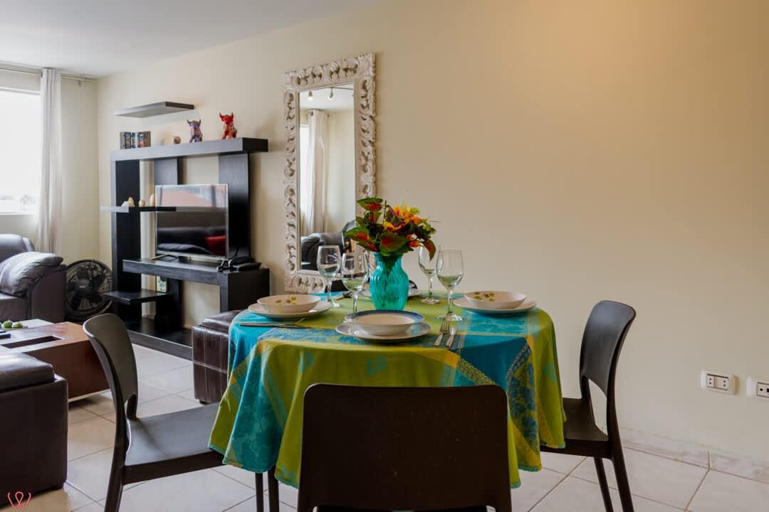 Departamento ubicado en Miraflores, acondicionado para 4 huéspedes con 1 cama matrimonial y 2 camas individuales.