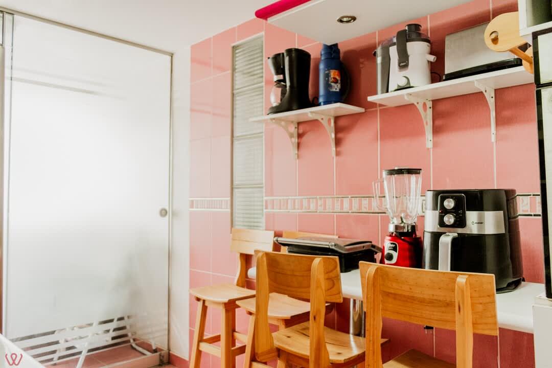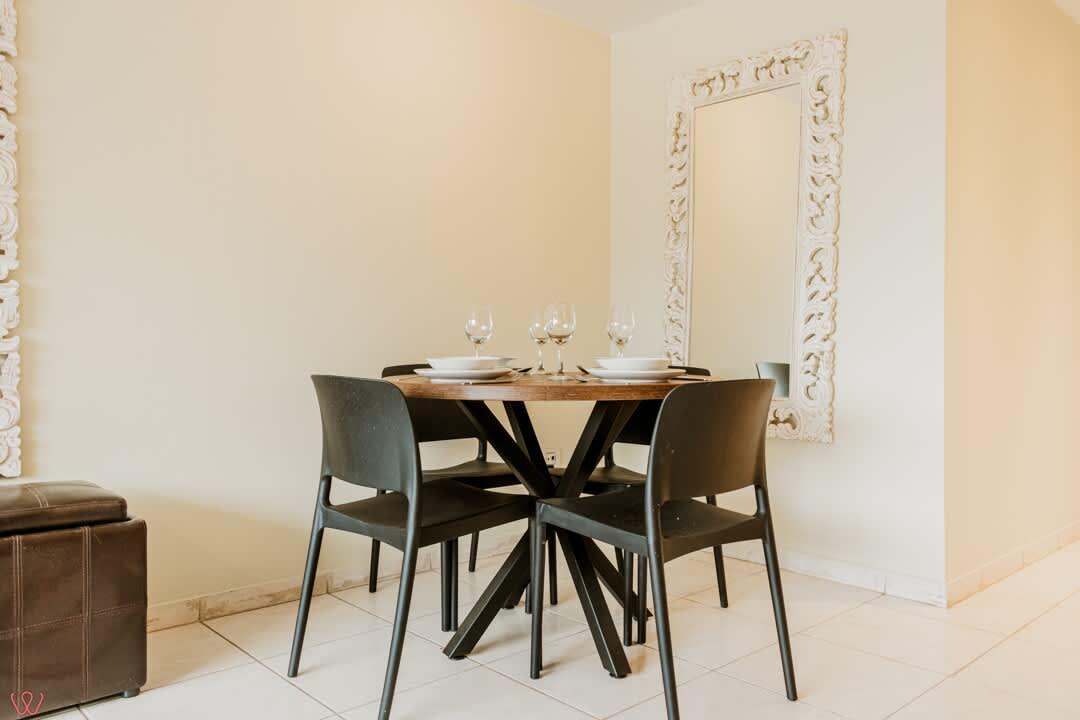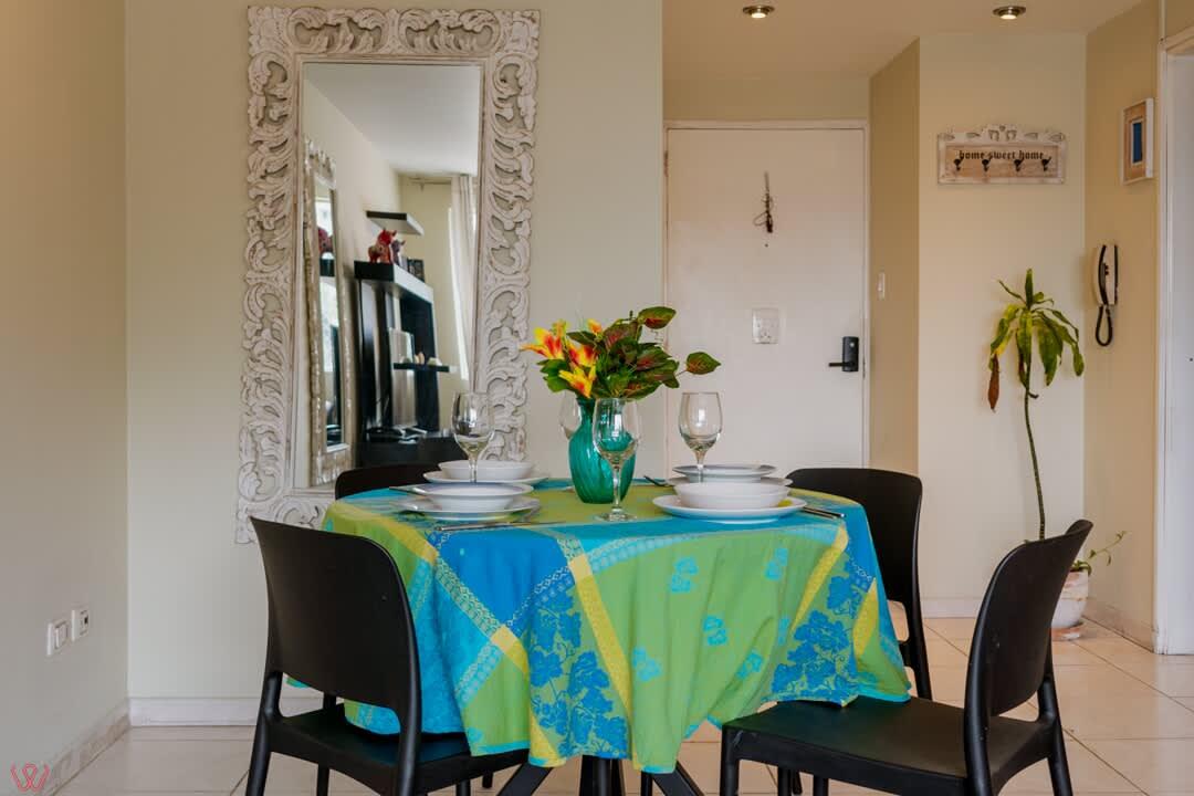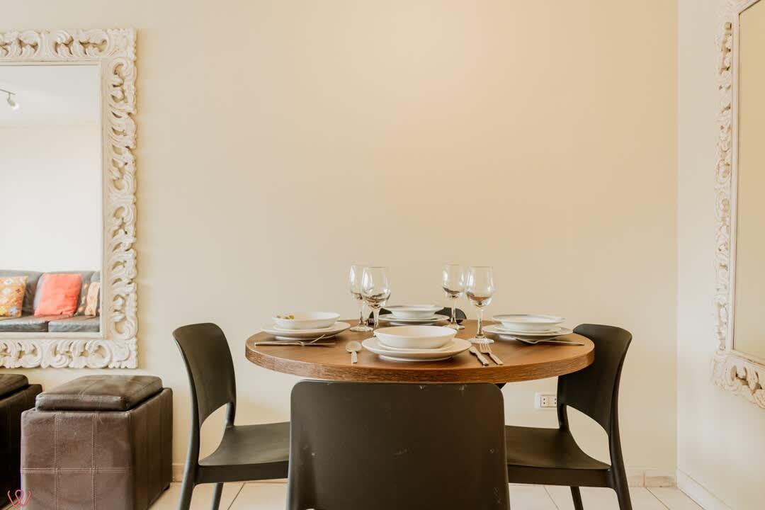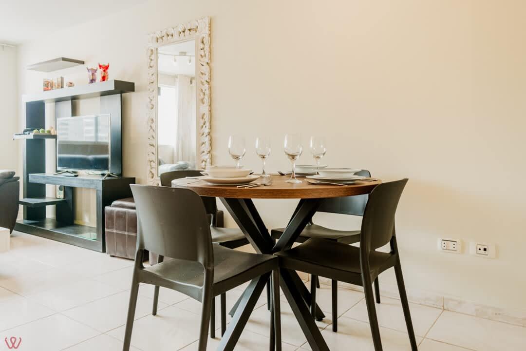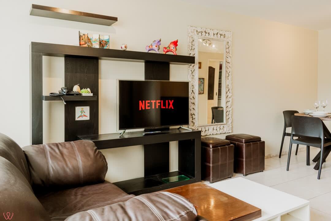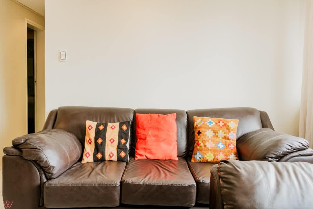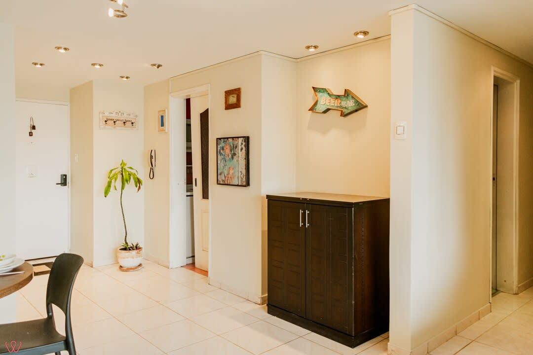 El edificio es bastante seguro, tranquilo y céntrico. El departamento tiene un diseño contemporáneo.