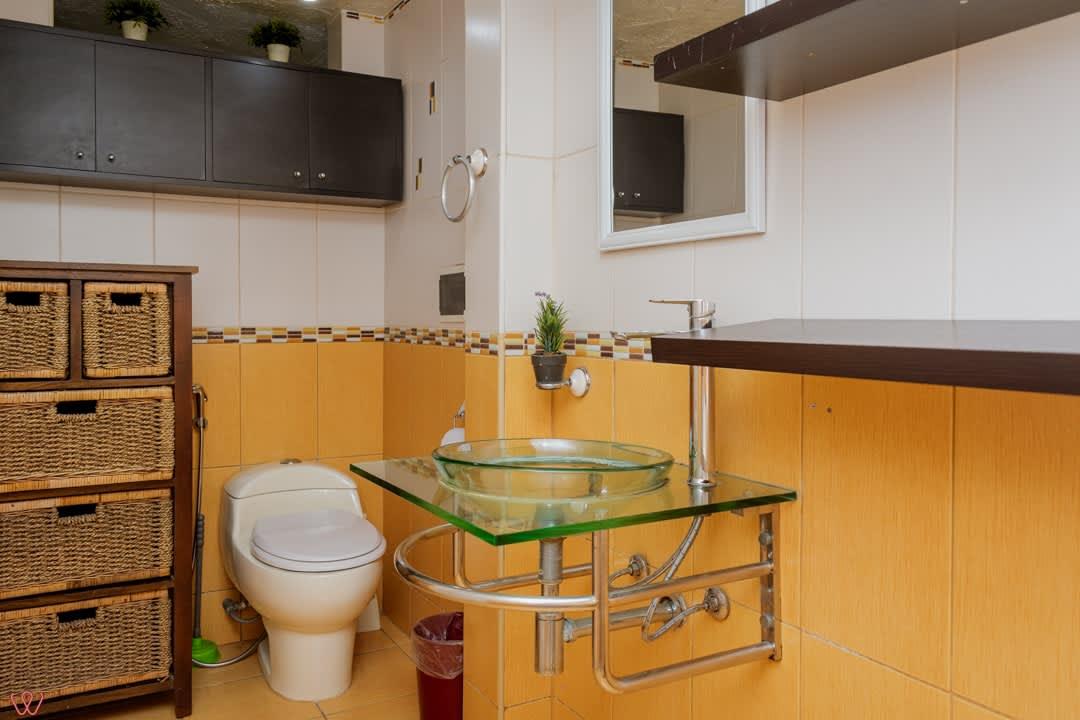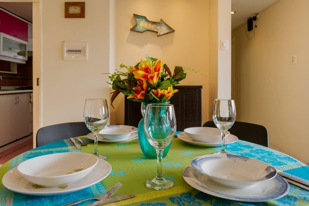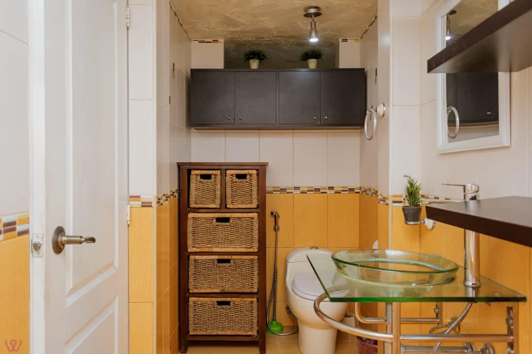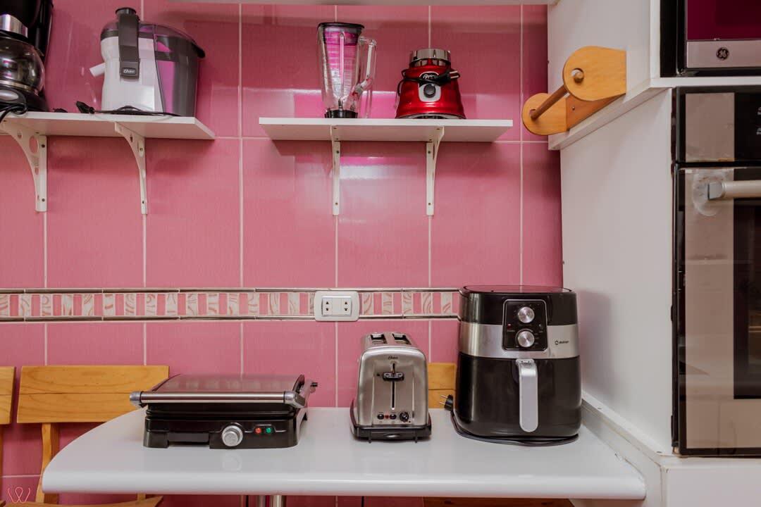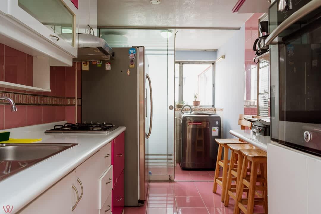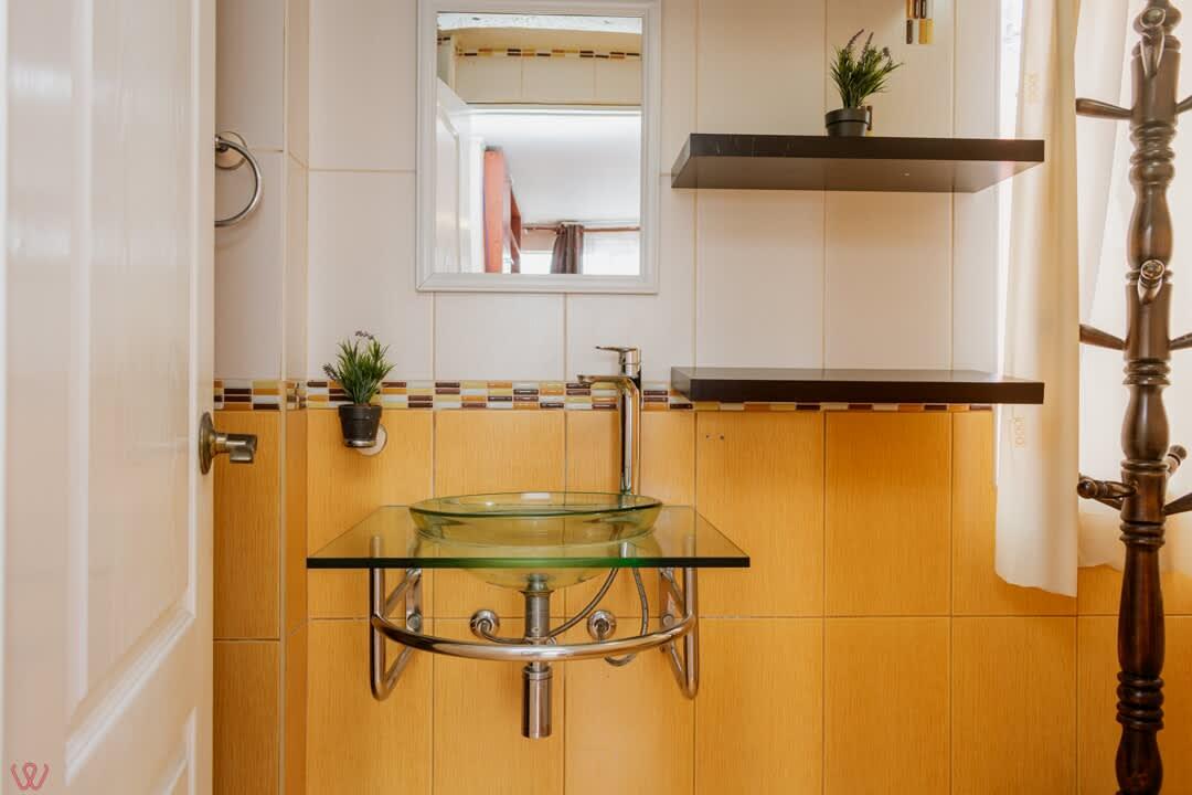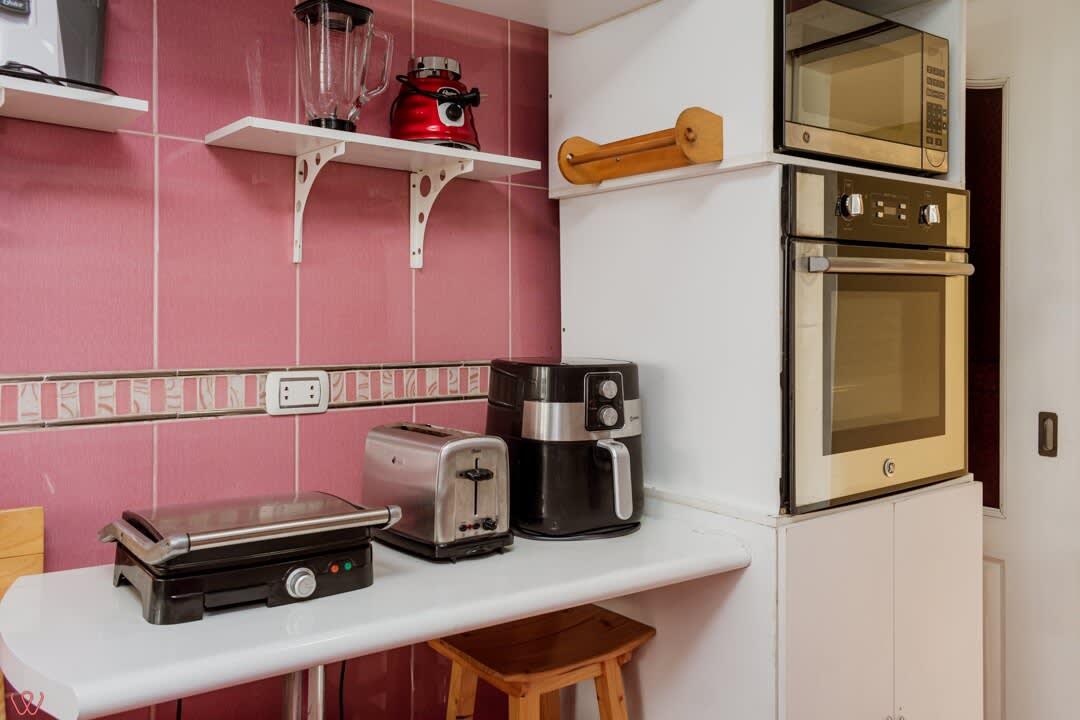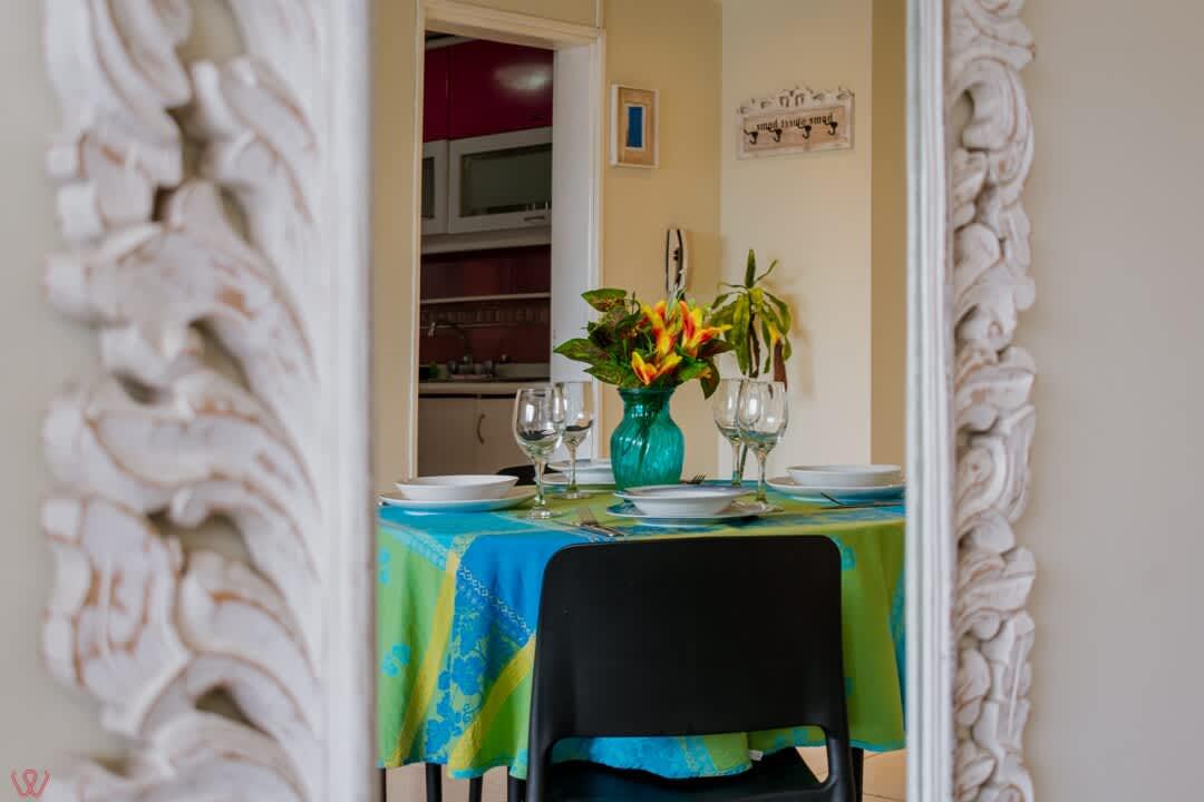 El edificio es bastante seguro, tranquilo y céntrico. El departamento tiene un diseño contemporáneo.