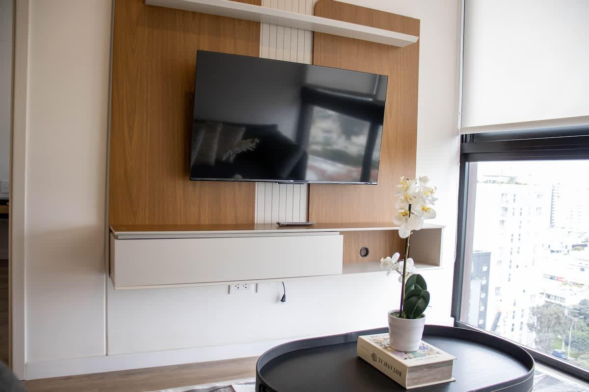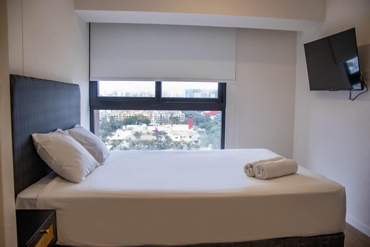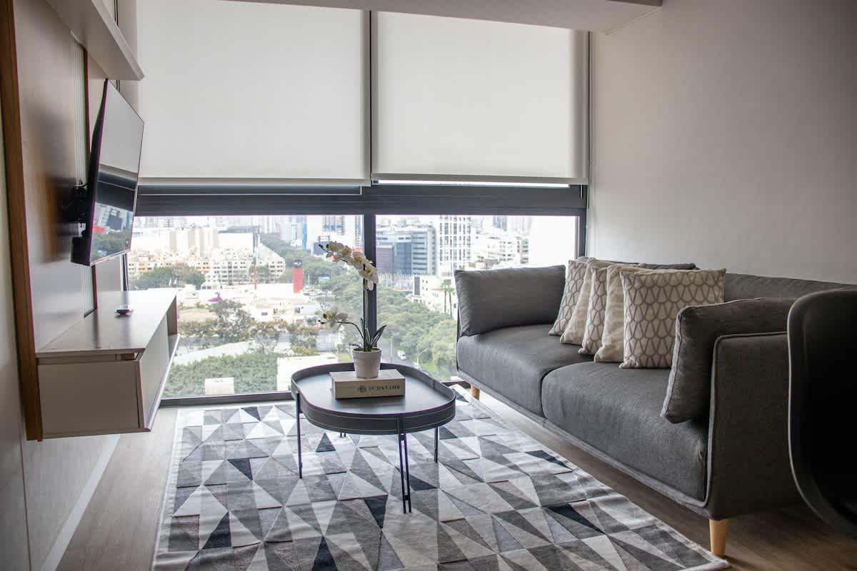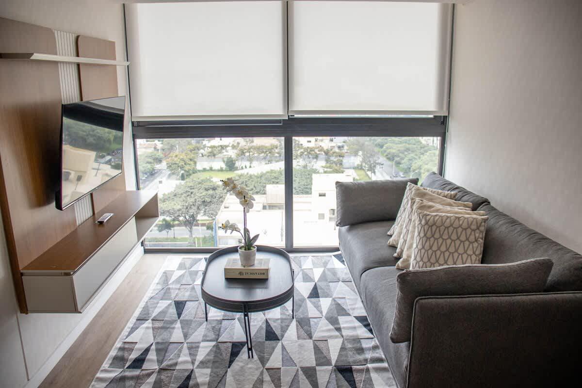 Moderno departamento de 2 habitaciones, cada una con baño privado, ubicado en la exclusiva zona de San Isidro. A solo pasos del Real Plaza Salaverry, rodeado de restaurantes, cafeterías, bancos, farmacias y supermercados. Muy cerca del Golf, del centro financiero y con fácil acceso a Miraflores y al aeropuerto por la Costa Verde o Vía Expresa. Con Wi-Fi de alta velocidad, cocina equipada y acabados de primera. Ideal para viajes de negocios o estadías prolongadas con total comodidad.