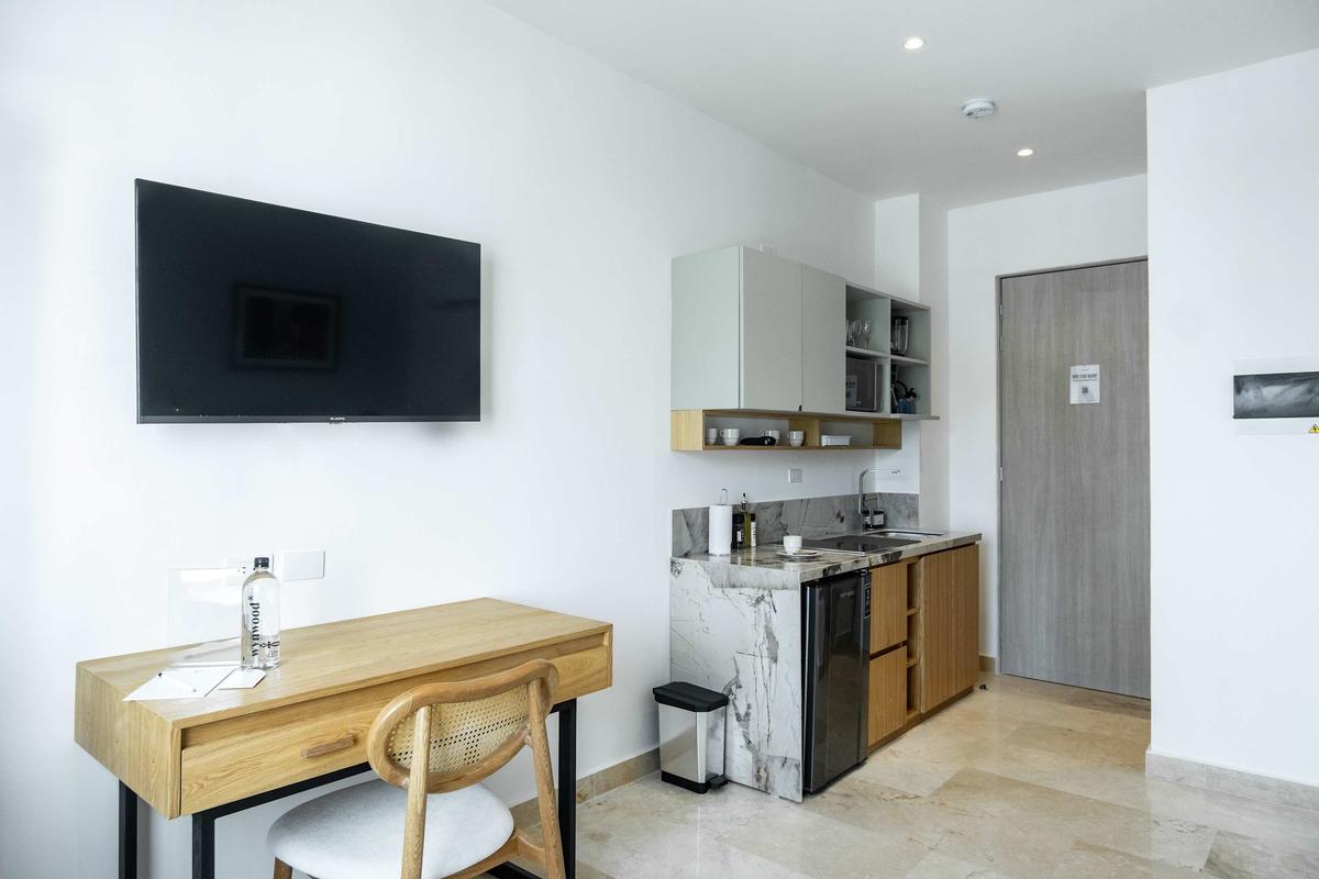 Brand-new 25 sqm exterior-facing design studio located in a luxury hotel-style tower on one of the best blocks in Bocagrande. Thoughtfully designed with premium finishes, modern kitchenette, air conditioning, and fast Wi-Fi. The studio offers exterior views and a bright, comfortable layout. The well-known Spinning Center Gym Cartagena is located within the same tower—ideal for short or extended stays.