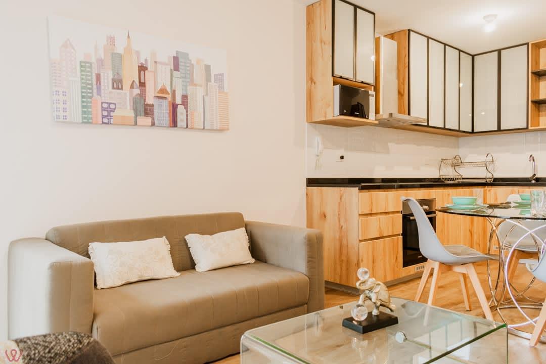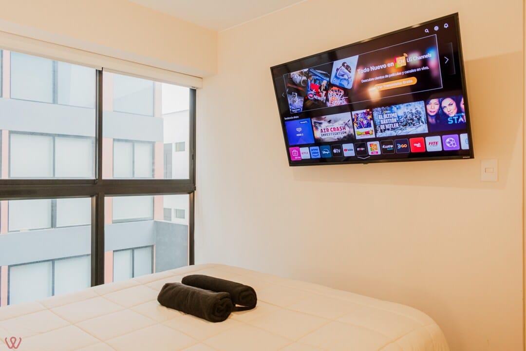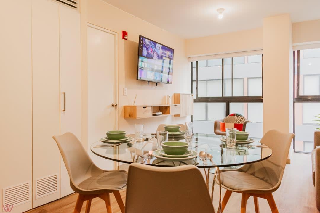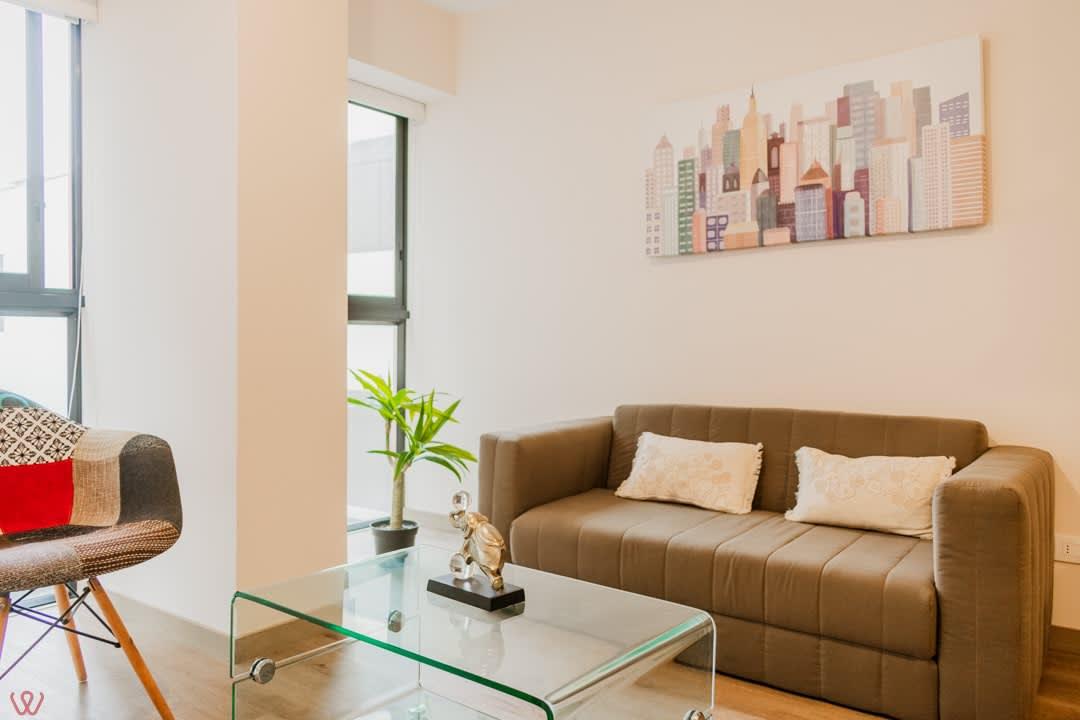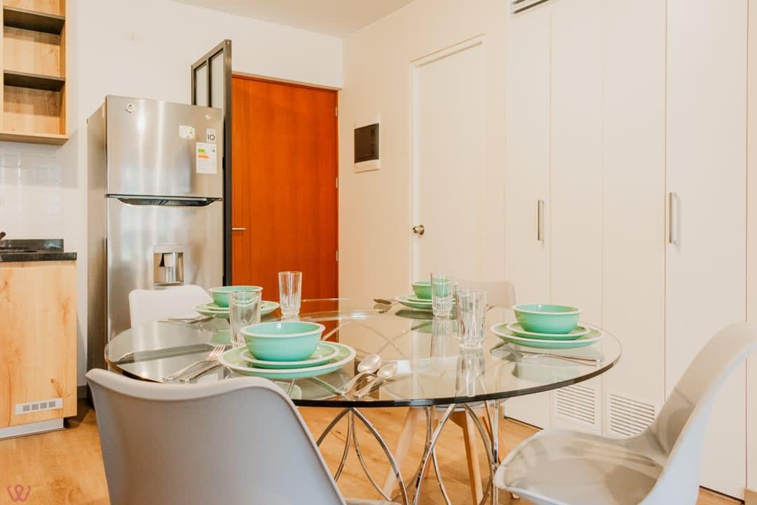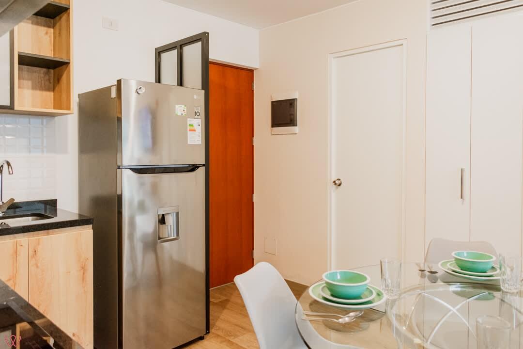 Liberty Polo, in the exclusive Surco neighborhood, offers a modern and elegant apartment ideal for couples, travelers, or small families. It features a fully equipped kitchen, fast Wi-Fi, air conditioning, a Smart TV, a double bedroom, and a sofa bed. Close to shopping centers, universities, and clinics, it guarantees comfort, security, and a prime location for a convenient and pleasant stay. We look forward to seeing you! The management now requires a 400 soles deposit to reserve the grill, lounge, and gourmet areas. The pool, gym, and coworking space do not require a deposit or payment.