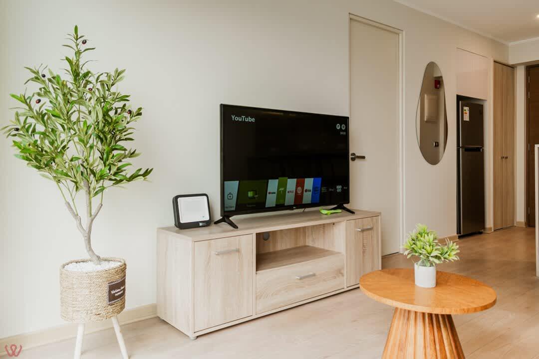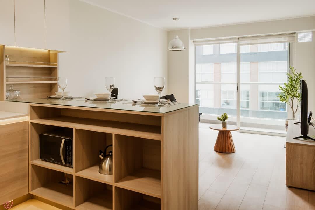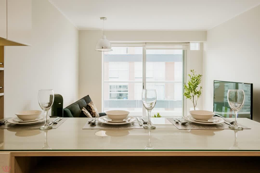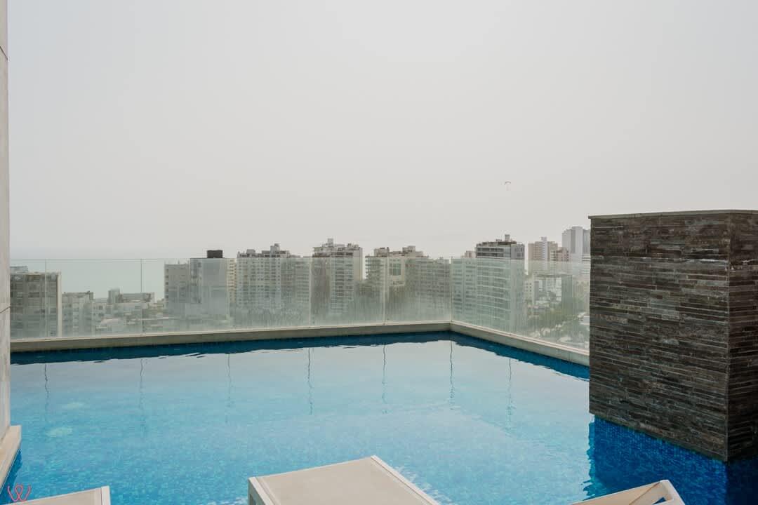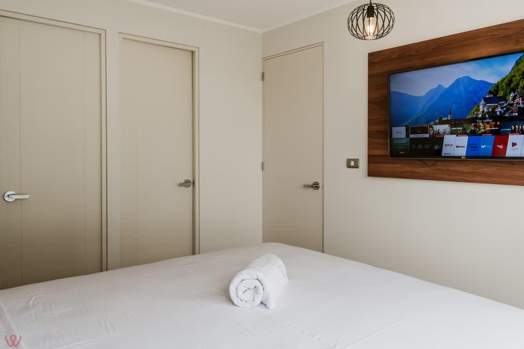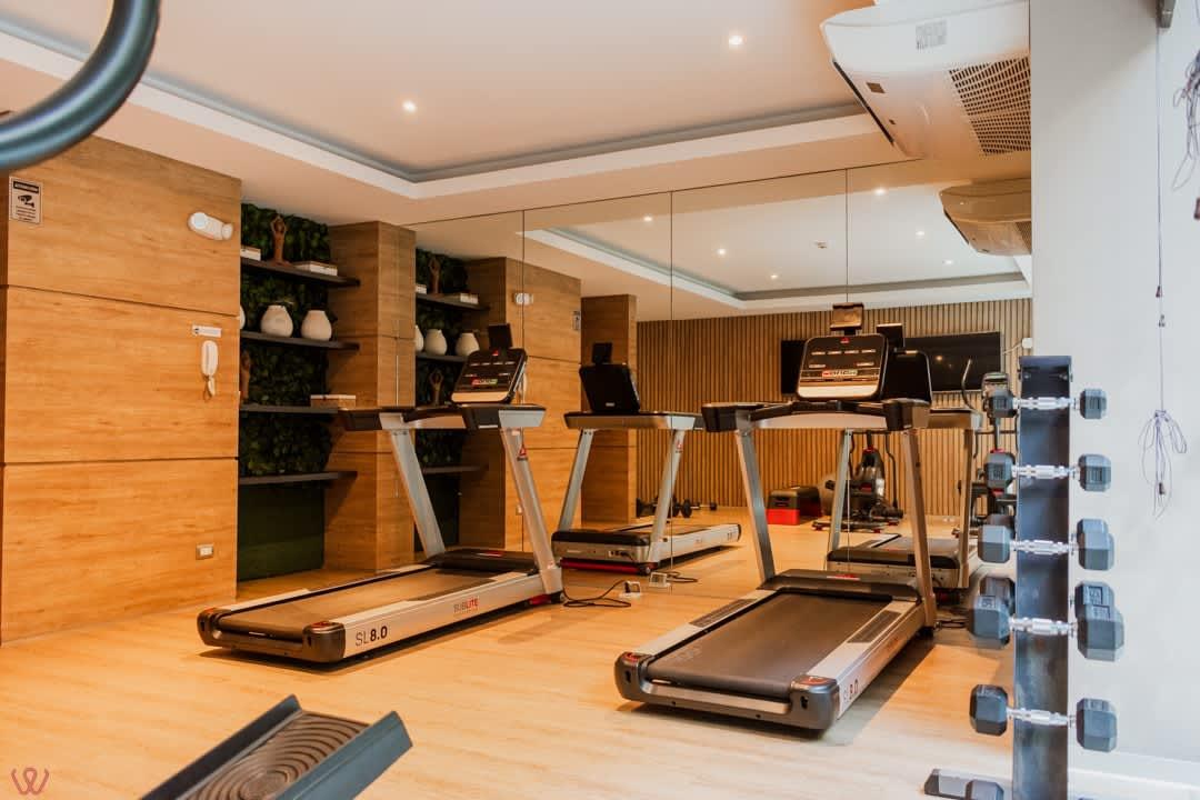 We have one bedroom, a full bathroom, an equipped kitchen, linens, areas available for guest use (pool, terrace, gym), and much more.
