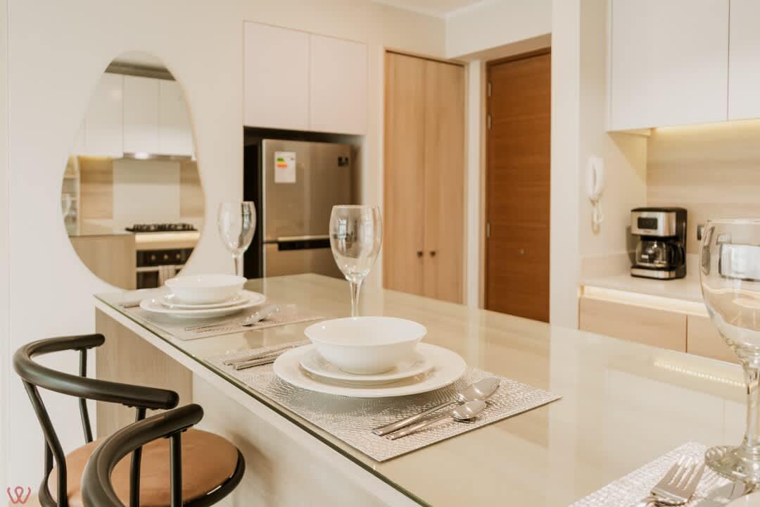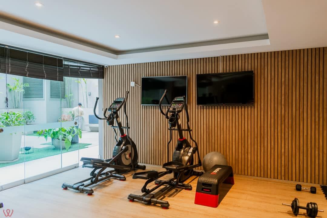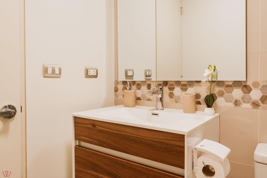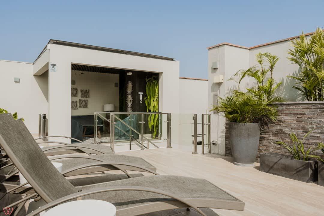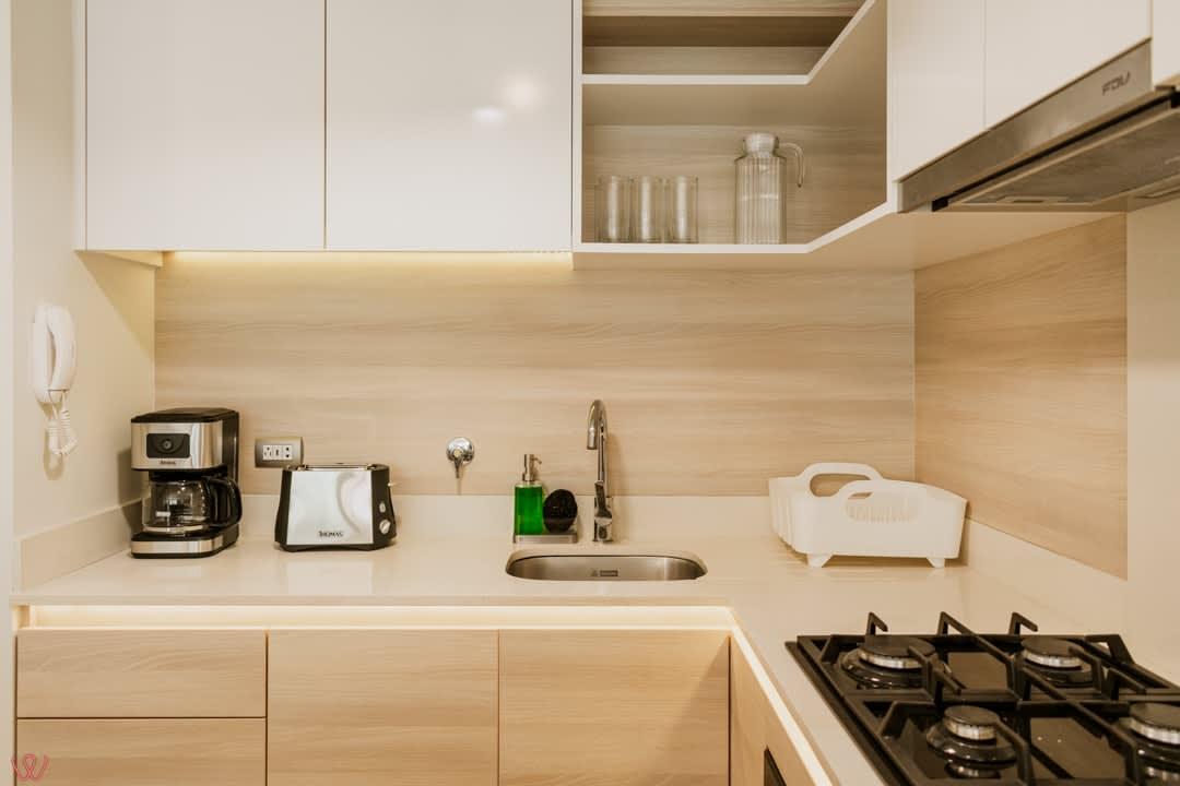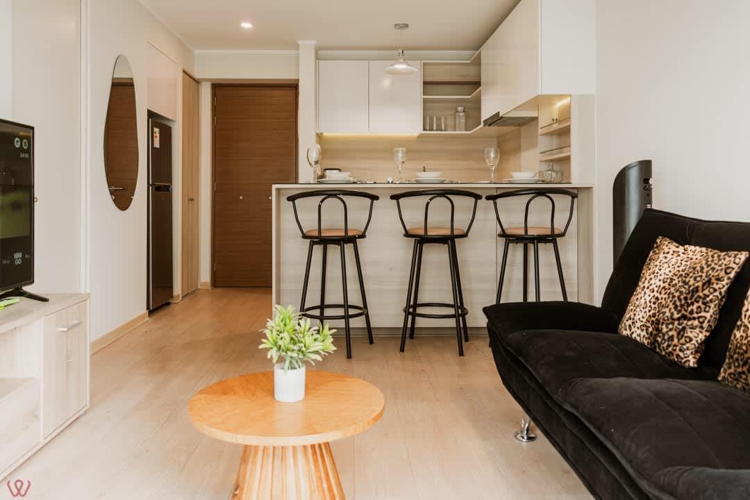We have one bedroom, a full bathroom, an equipped kitchen, linens, areas available for guest use (pool, terrace, gym), and much more.
